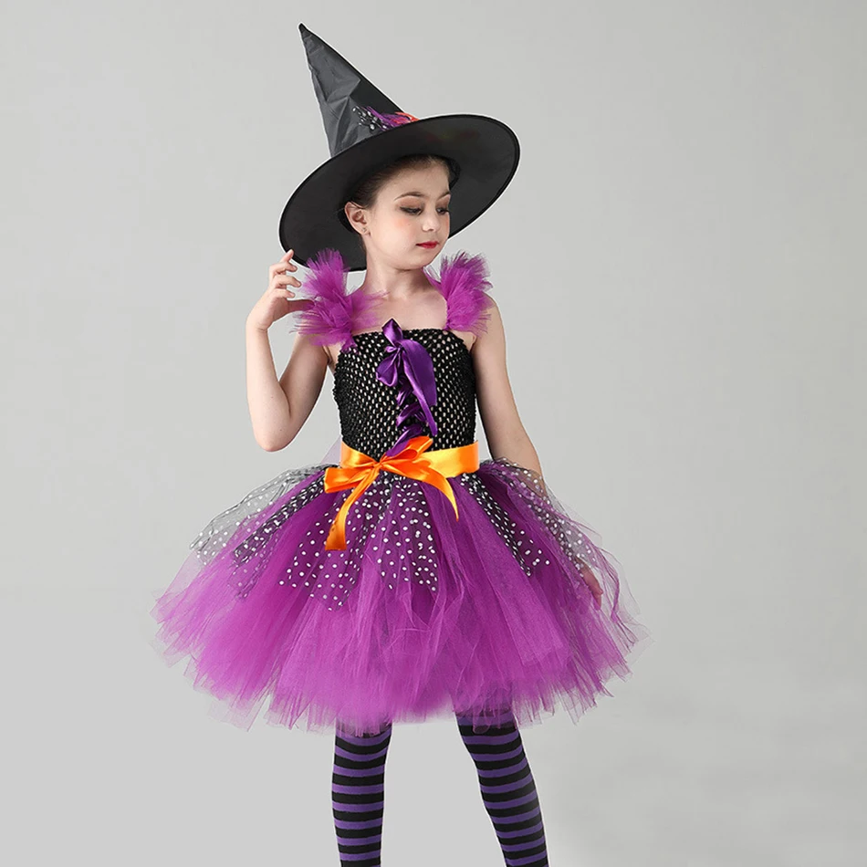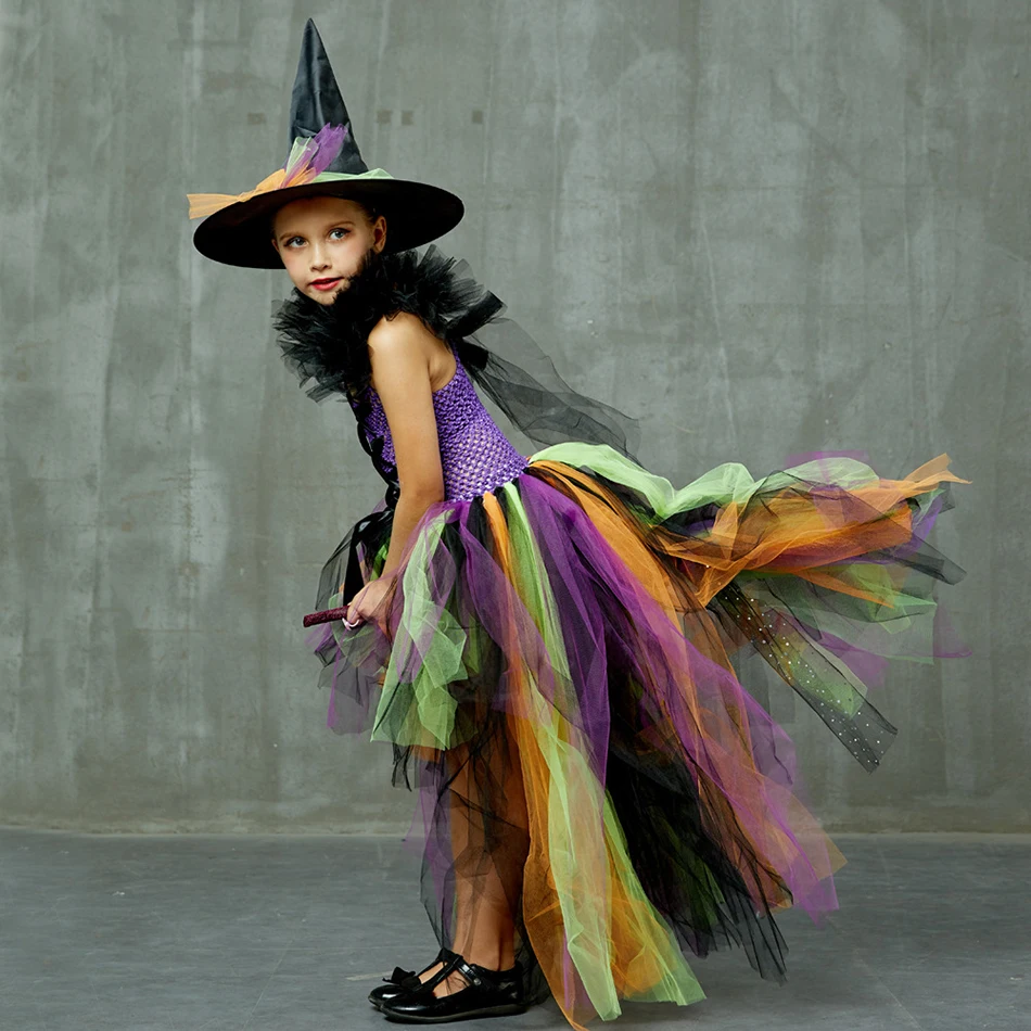 Классическое платье-пачка ведьмы для девочек со шляпой; Детский кос...