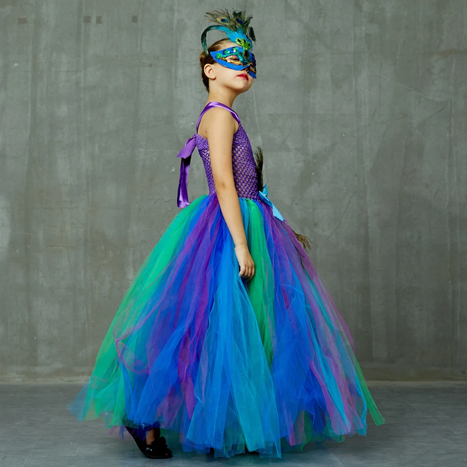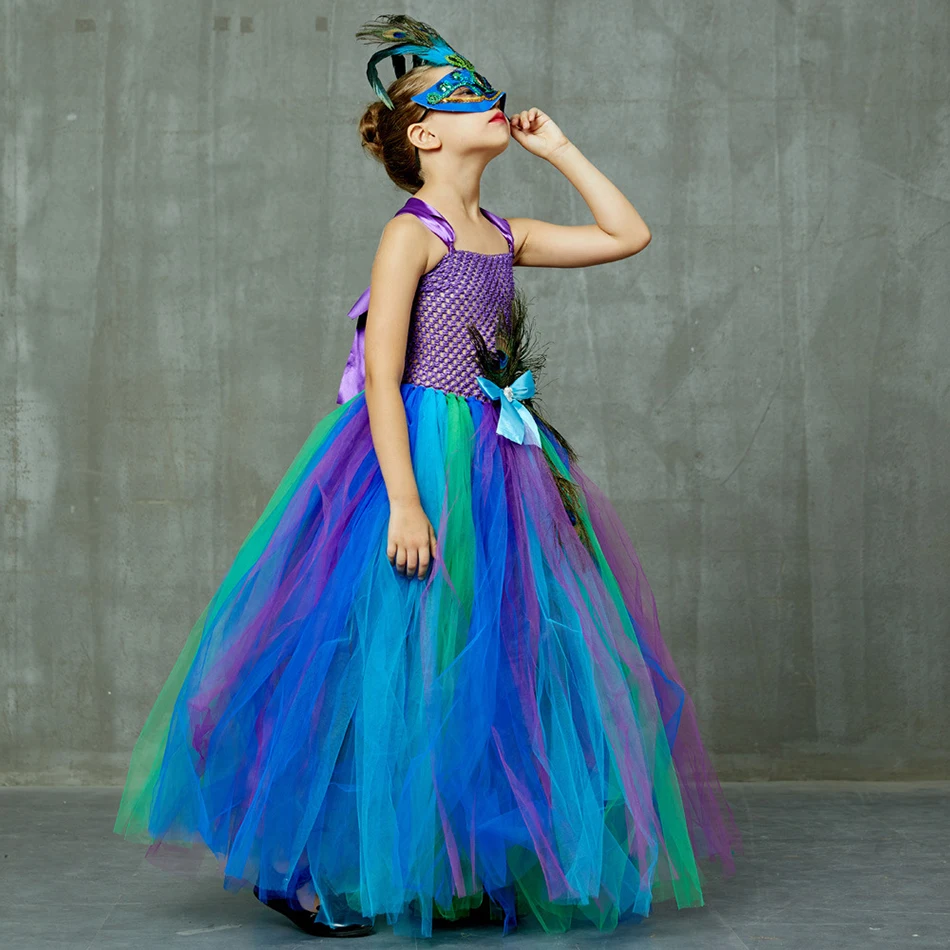 Платье-пачка павлиньи перья цветы для девочек костюмы на Хэллоуин д...