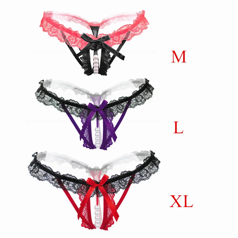 Женские трусики с открытой промежностью, кружевное Прозрачное нижнее белье, женское сексуальное белье, растягивающиеся стринги с массажным жемчугом