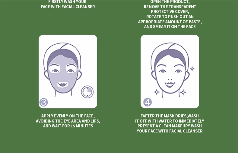1. Однотонная Очищающая маска зеленого чая содержит экстракт зеленого чая, который может эффективно очищать поры кожи, глубоко очищать грязь, регулировать водный баланс кожи и масла, восстанавливать влагу кожи и питать кожу.