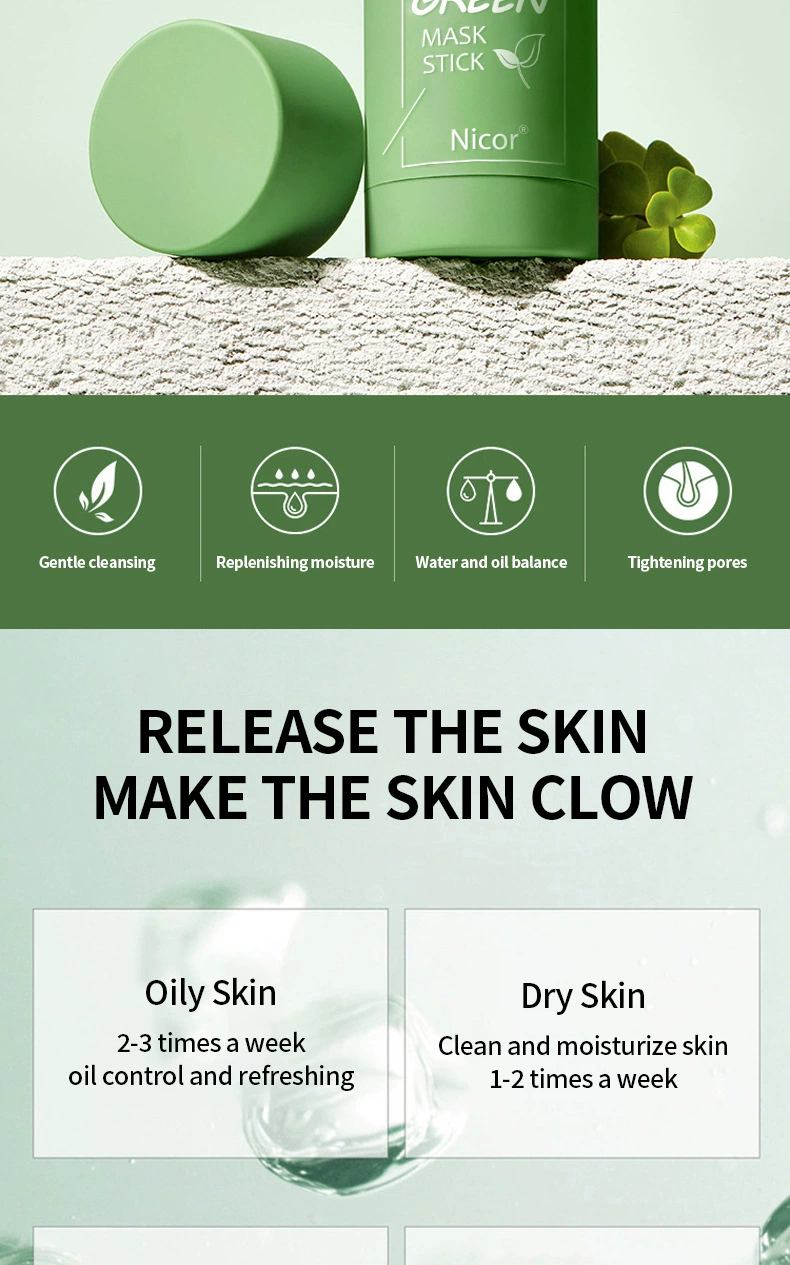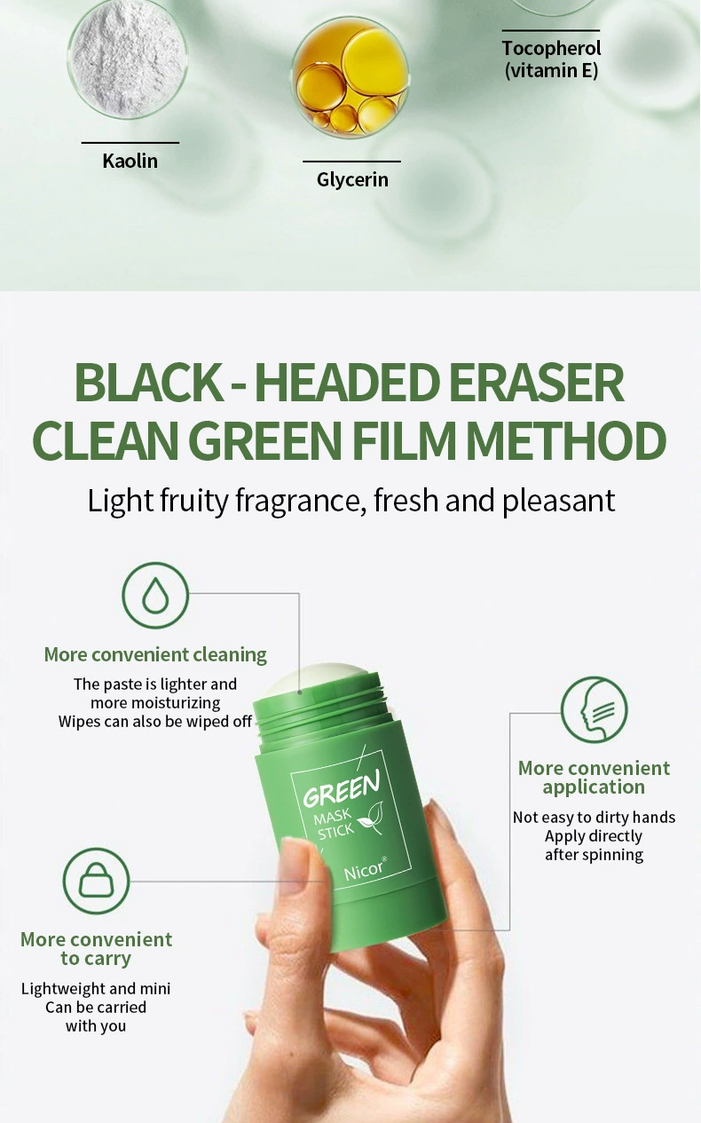 Очищающая зеленая палочка, маска для зеленого чая, маска, очищающая палочки пластилина, маска для контроля жирности, против акне, отбеливания баклажан