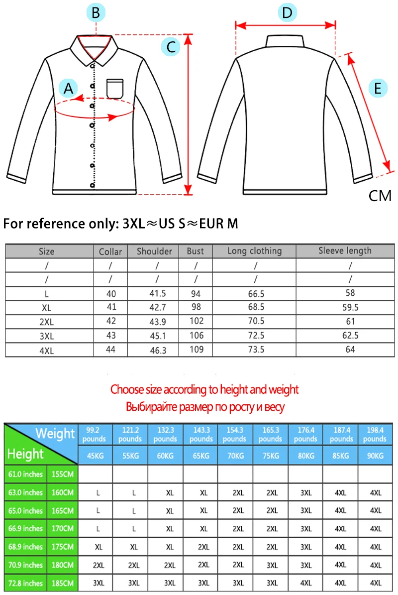 A: обхват груди B: воротник C: длина D: плечо E: рукав
