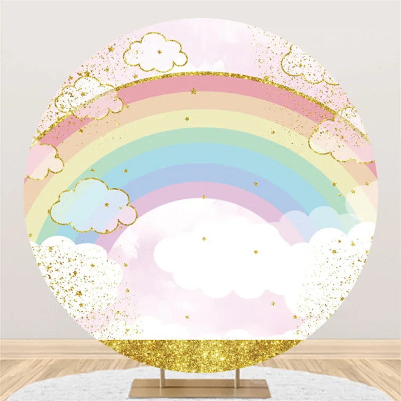 Фон для фотосъемки с днем рождения Круг Золотой Радуга на заказ детская вечеринка эластичная круглая подставка крышка баннер