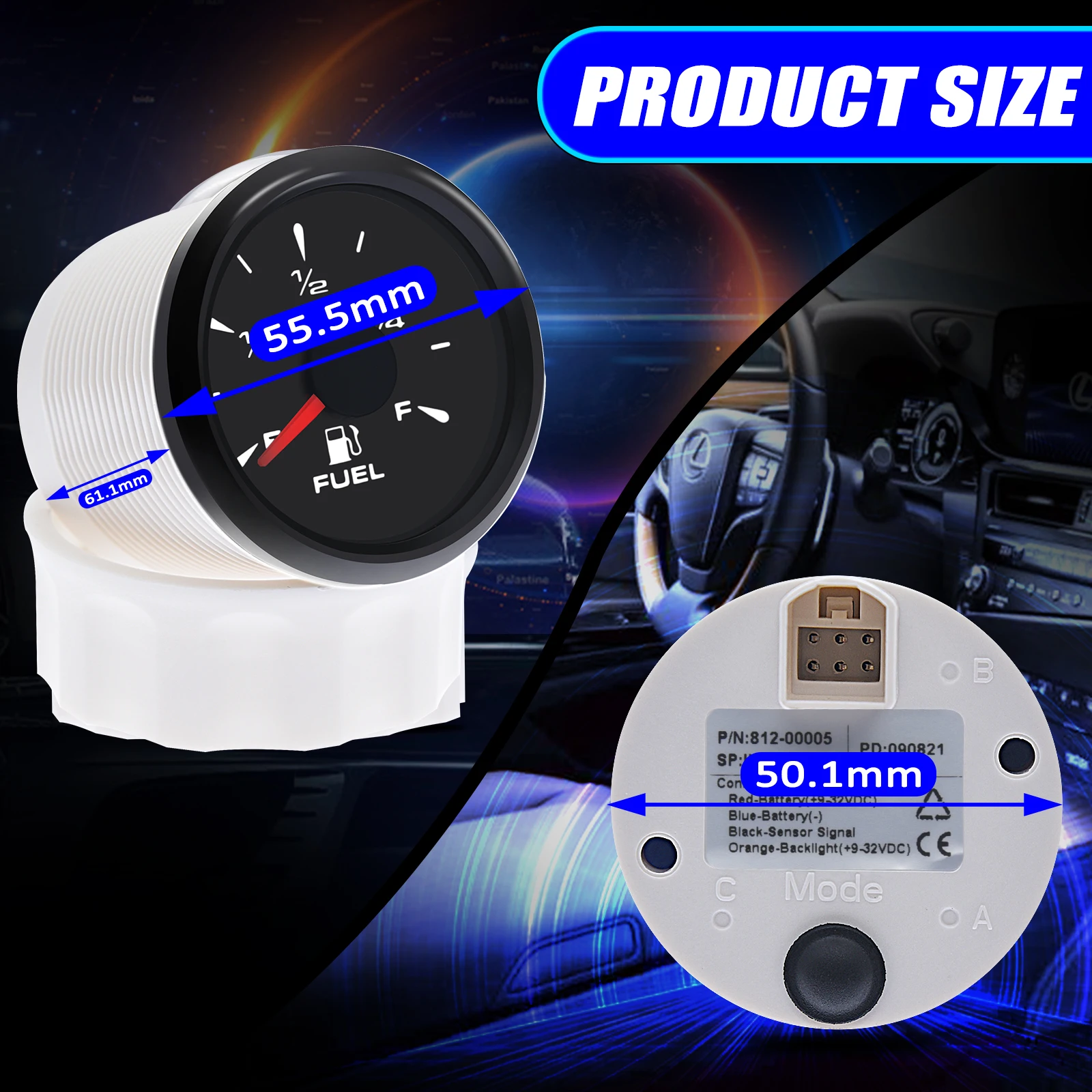 Датчик уровня топлива, 0-32 В, 7 цветов подсветки, 52 мм, 9-32 В