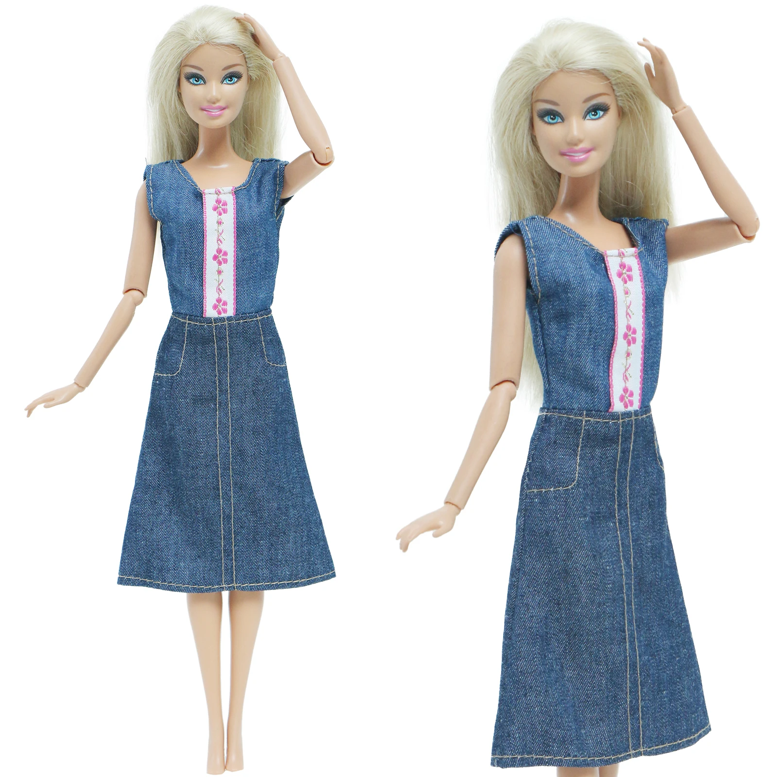 1 комплект модных синих джинсовых платьев BJDBUS, повседневная одежда, простая Стильная Одежда для куклы Барби, Детские аксессуары, домашние игрушки сделай сам