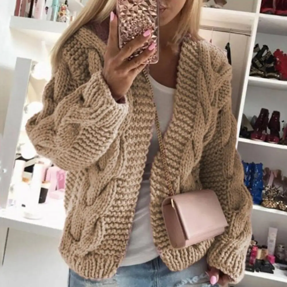 Кардиган, Свитер, укороченный топ, повседневный однотонный вязаный свитер с косами на осень и зиму, куртка, кардиган, женская одежда, черный