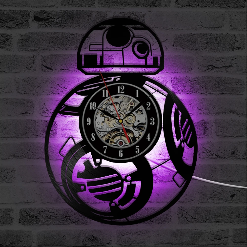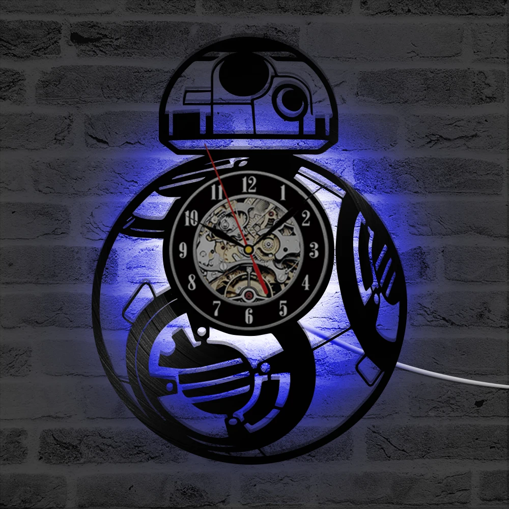 Настенные часы серии войны между звездами с виниловой пластиной, креативные Ретро светодиодсветодиодный часы 7 цветов, украшение для дома, гостиной, кровати