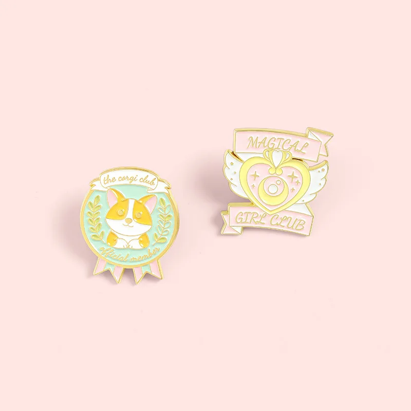 Оптовая продажа, забавные эмалевые булавки корги, сердце, луна, крыло, волшебная палочка для девочек, значки, броши для женщин, детей, собак, щенков, подарки для любимых