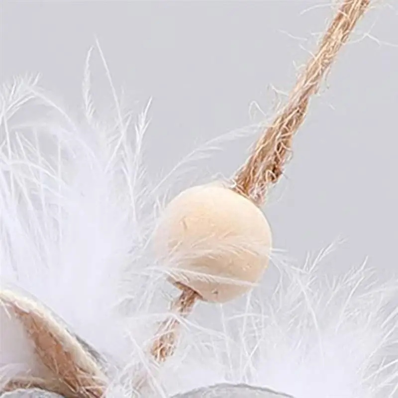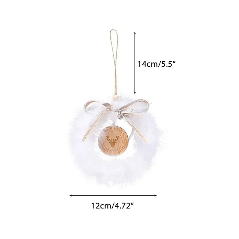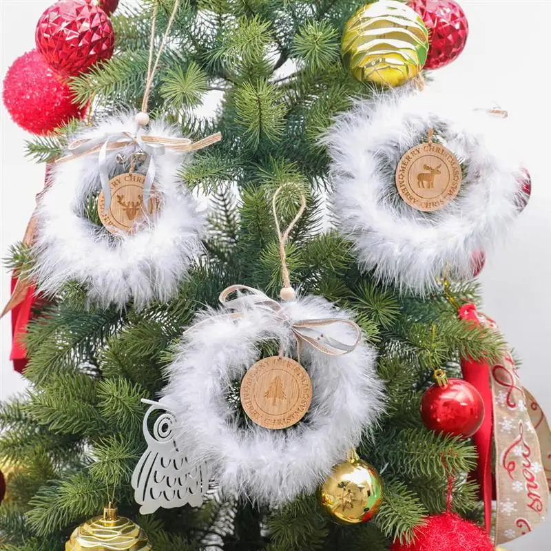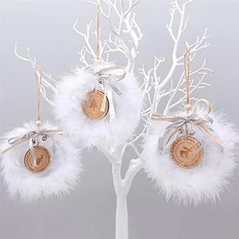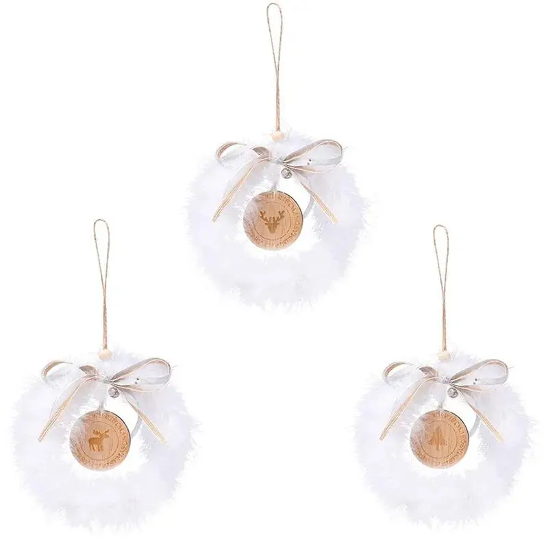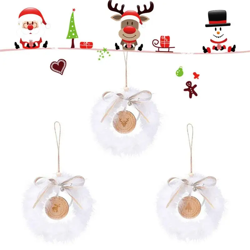 3 шт. Рождественский венок с колокольчиками и белыми искусственными перьями, подвесная Колокольчик для елки, деревянная подвеска, Рождественское украшение