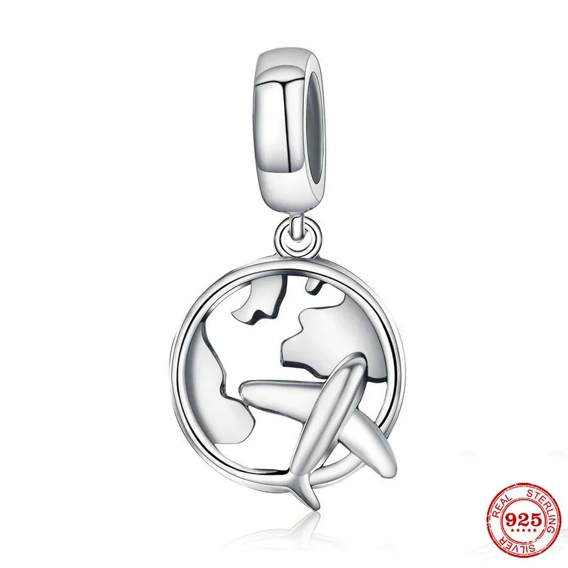 Бусина-Шарм карта мечты и самолет из серебра 925 пробы для браслето...