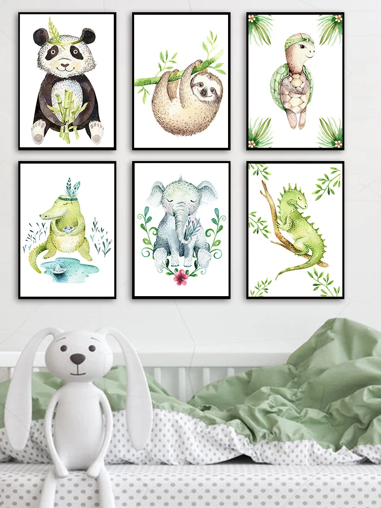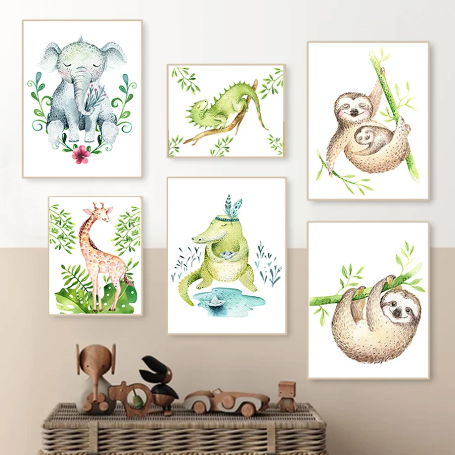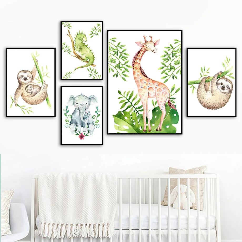 Слон жираф кролика, енота лиса детская стена искусство холст картин...