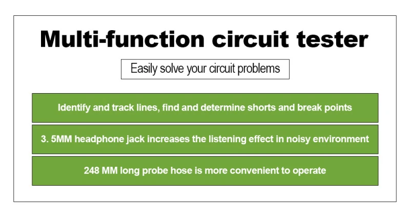 Этот инструмент предназначен для идентификации и отслеживания проводов или кабелей, не повреждая изоляцию. Вы также можете использовать его для проверки короткого замыкания и открытия цепи и так далее. В комплект поставки входят отправитель и приемник.