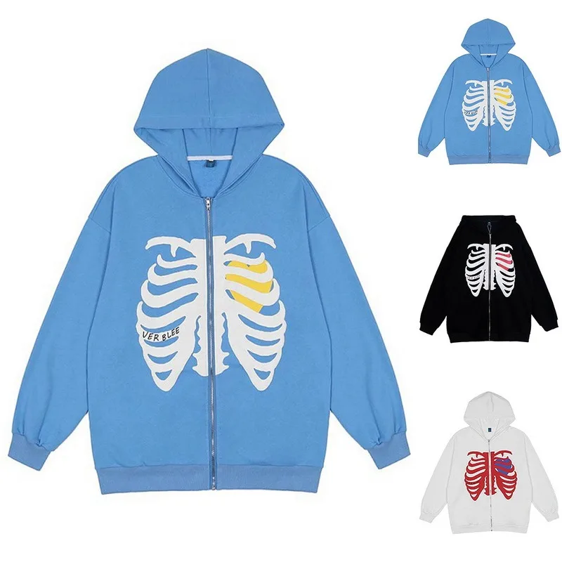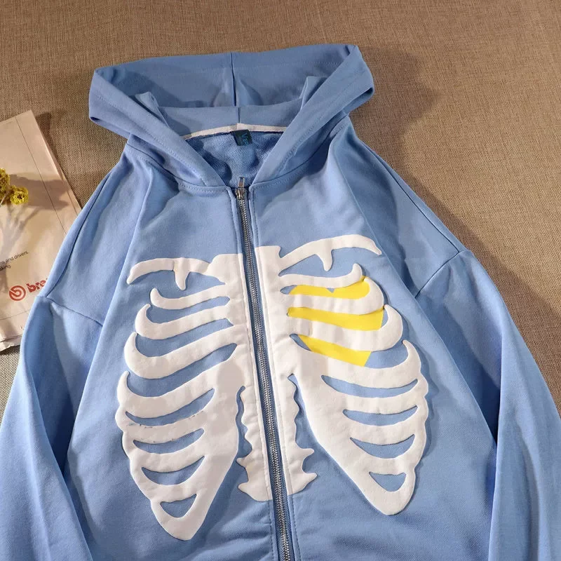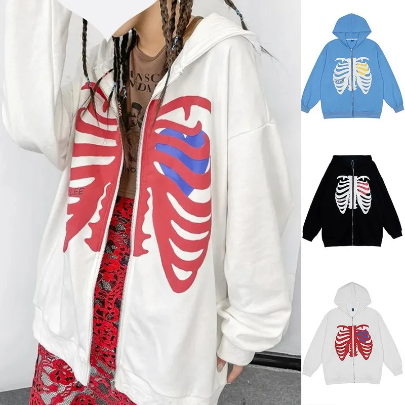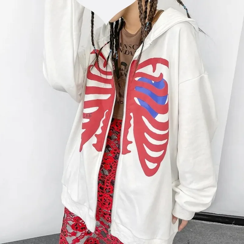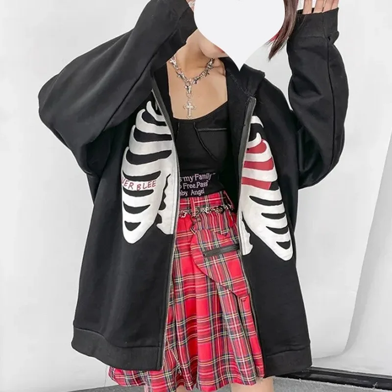Женская толстовка на молнии с принтом черепа в готическом стиле 2021 Y2K, свободный свитер с капюшоном в стиле Харадзюку