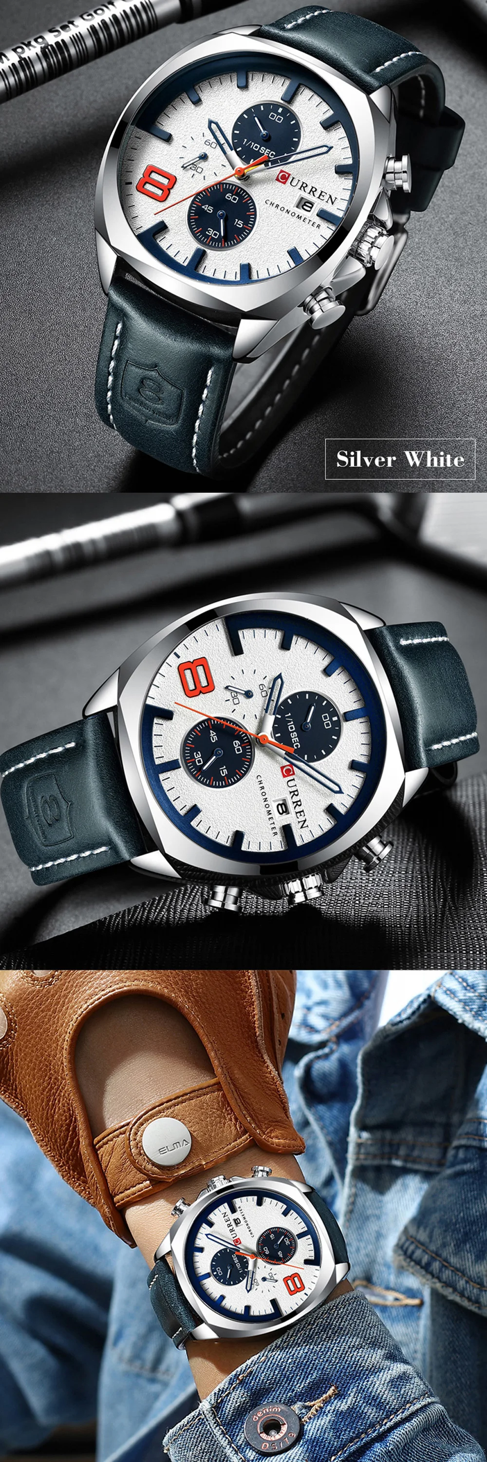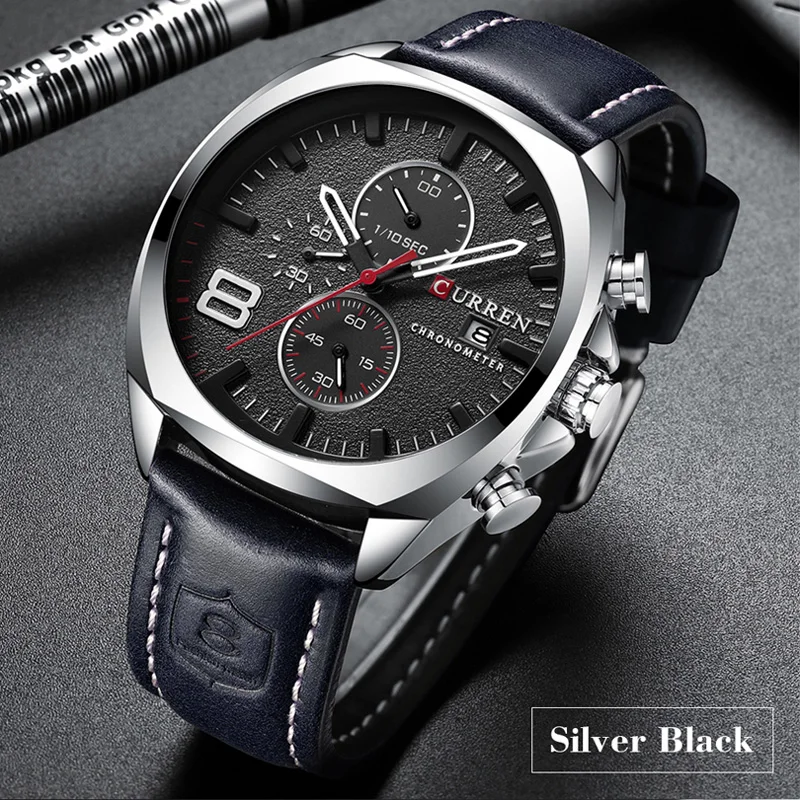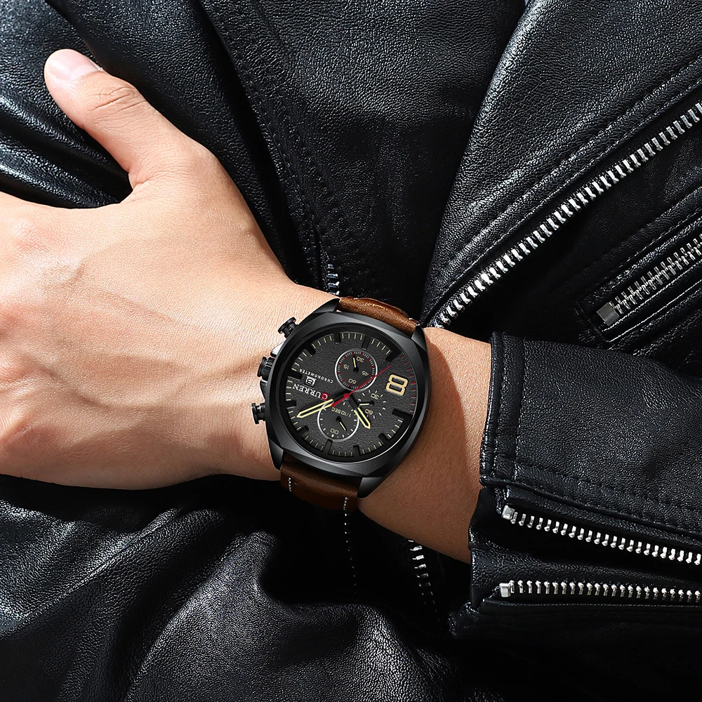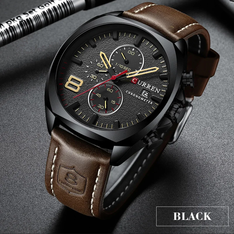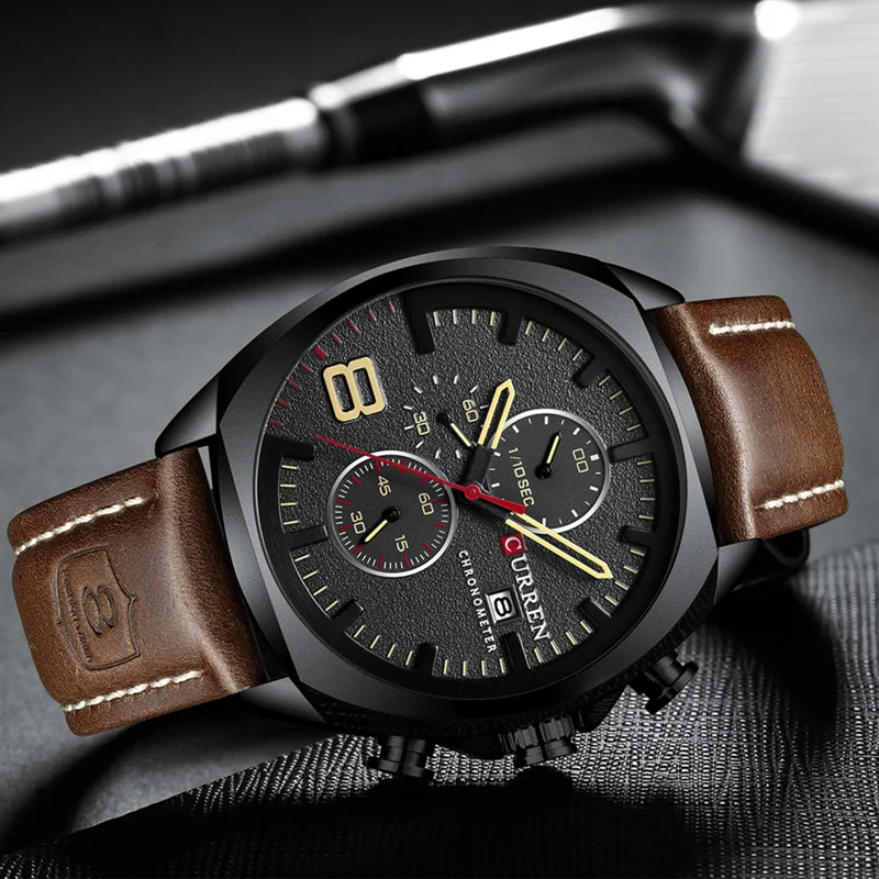 Часы наручные CURREN мужские с кожаным ремешком, модные повседневны...