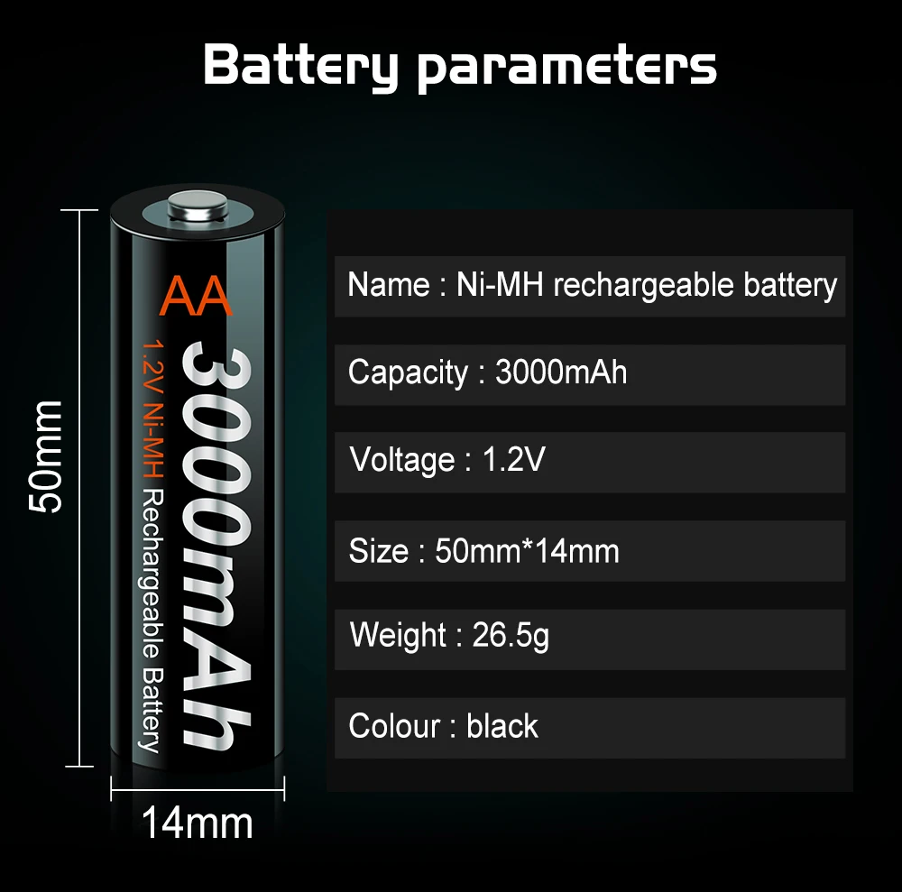 PALO AA Аккумуляторная батарея aa NiMH 1,2 V 3000mAh Ni-MH 2A предв...