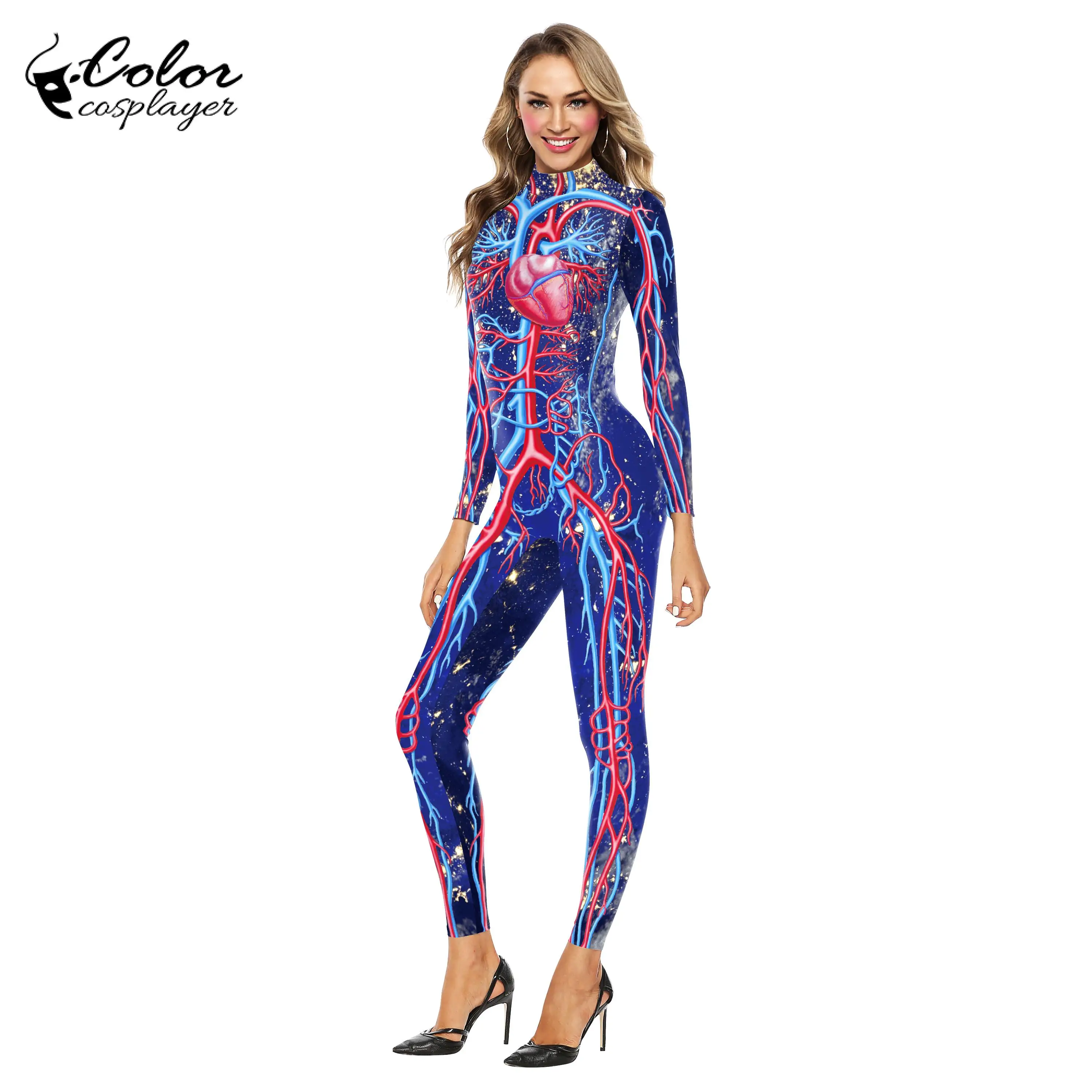 Костюм на Хэллоуин женский с цифровым принтом, боди с длинным рукав...