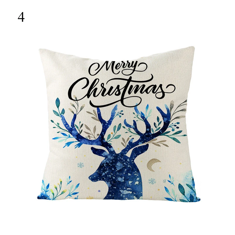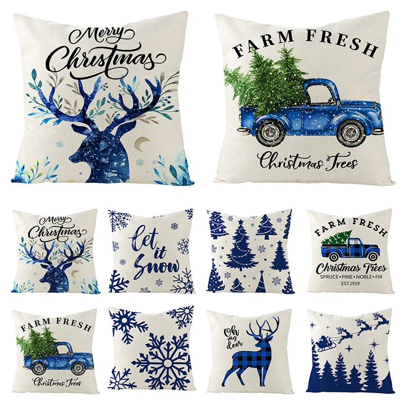 Синяя, белая Рождественская льняная наволочка, наволочки с принтом ...