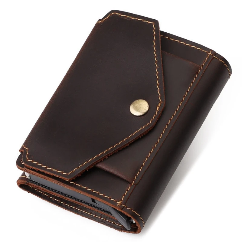 Улучшенный Мужской винтажный кошелек из натуральной кожи с рчид-блокировкой денег, автоматический выдвижной чехол для кредитных карт, деловой кошелек, карман для наличных