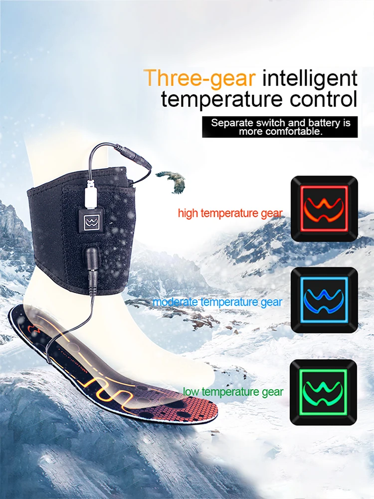 Точки пули: 1. Зимняя теплая стопа: стелька с подогревом имеет хороший эффект тепла, чтобы сохранить тепло зимой.2. Моющиеся и многоразовые: стельки с подогревом можно стирать вручную.3. Длительное использование: температура сохраняет тепло в течение 6 -12 часов и длится долгое время, поэтому стелька с подогревом сохраняет ваши ноги в тепле.4. Качественный материал: стельки для обуви изготовлены из высококачественного углеродного волокна для дезодорирования. Они дышащие, дезодорирующие и свободные.5. Использование унисекс: размер 36-46. Стельки для электрической обуви могут быть обрезаны по длине, которая легко подстраивается под правильный размер и подходит для мужчин и женщинОсобенности: Четыре способа нагрева (дополнительный литиевый аккумулятор, внешний аккумулятор, зарядное устройство USB и батарейный блок)3-х уровневый контроль температуры (высокая температура, средняя температура и низкая температура) (3-х уровневый контроль температуры, на возраст от 6 до 12 часов)Амортизирующие прокладки на подошве обеспечивают амортизацию.Стелька с подогревом дышащая, легкая и моющаяся.Стельки 36-46 размеров можно разрезать.Поставляется с 3,7 V / 3600mAh перезаряжаемая литиевая батареяСтелька с подогревом может быть применена к различным типам обуви.Максимальная температура нагрева может достигать 65 градусов Цельсия.Характеристики: Название: термостат электрическая стелькаМатериал: полиэстер и нагревательный материалРазмер: 36-46 размер стельки можно отрезатьУпаковочный лист:1 пара стелек для электрического отопления2 * Чехлы для аккумуляторов с регулируемой температурой2 * Зарядка через USB Android кабели2 * батареи DC3600MAH2 * короткий кабель для Android-DC
