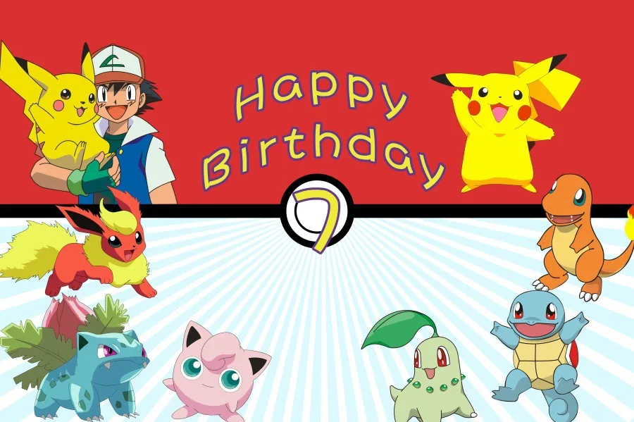 Фон для фотосъемки с изображением Пикачу, постер на день рождения, ...