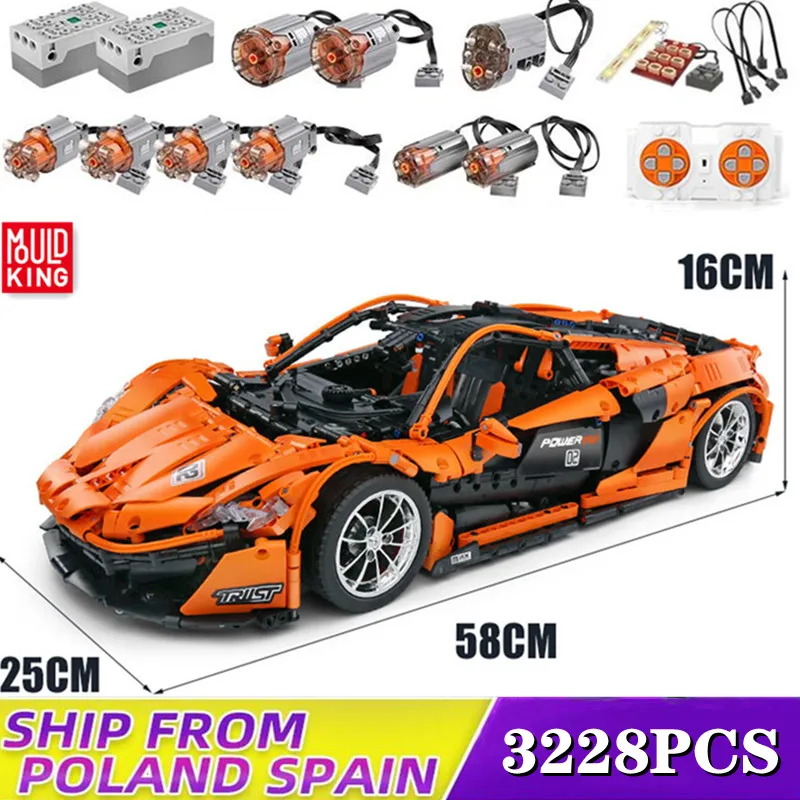 Радиоуправляемые игрушки Mould King 13090 для детей, моторизованный гоночный автомобиль McLarens P1 Hypercar, строительные блоки, кирпичи, подарки на день рождения