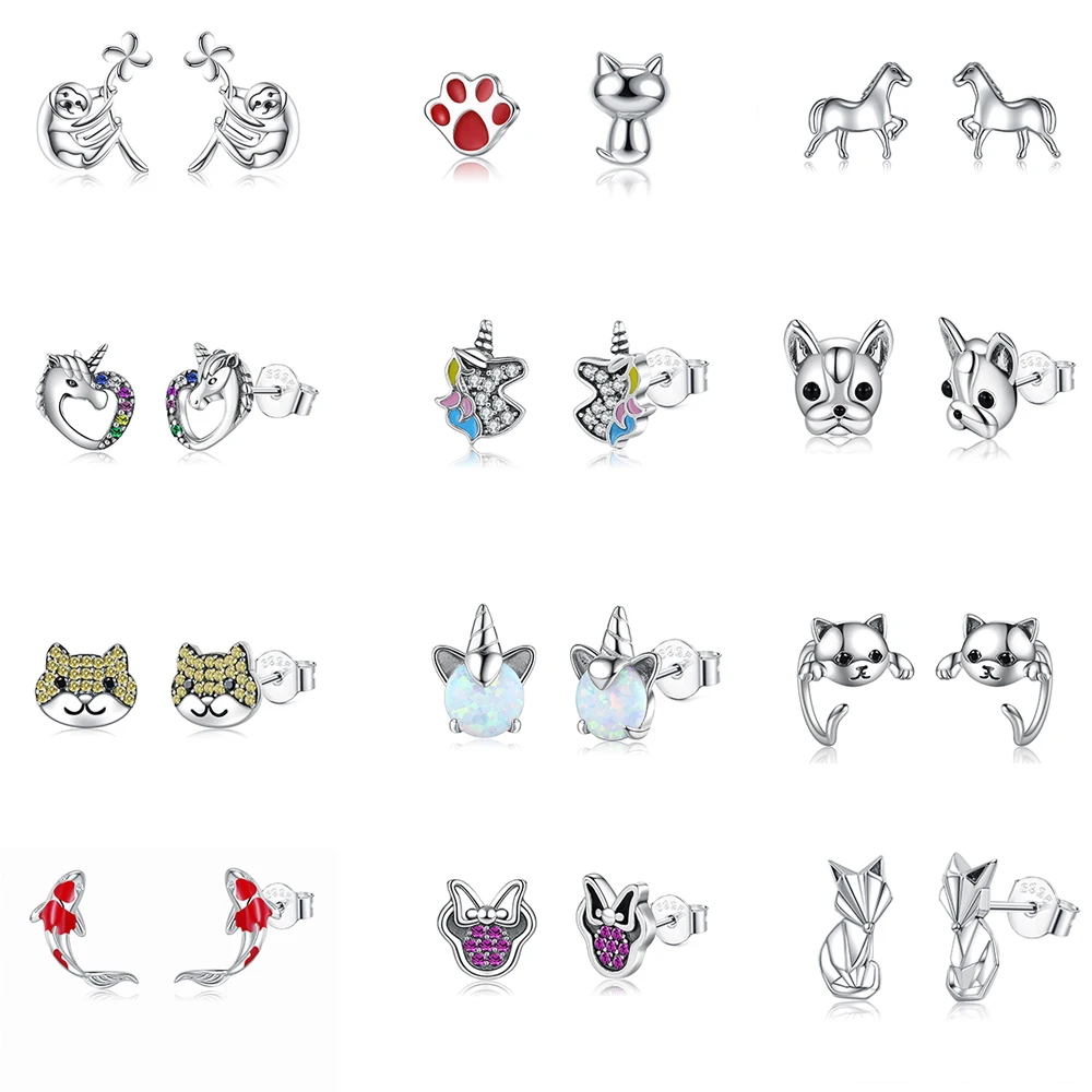 Женские серьги-гвоздики в виде маленького питомца из серебра 925 пробы
