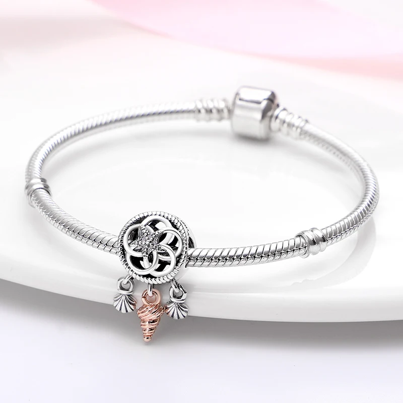 Новинка 2021 г., браслет Pandora, ожерелье, ракушка, залив, платформа De Ley, шарм, бисер, Дамская бижутерия сделай сам, подарок