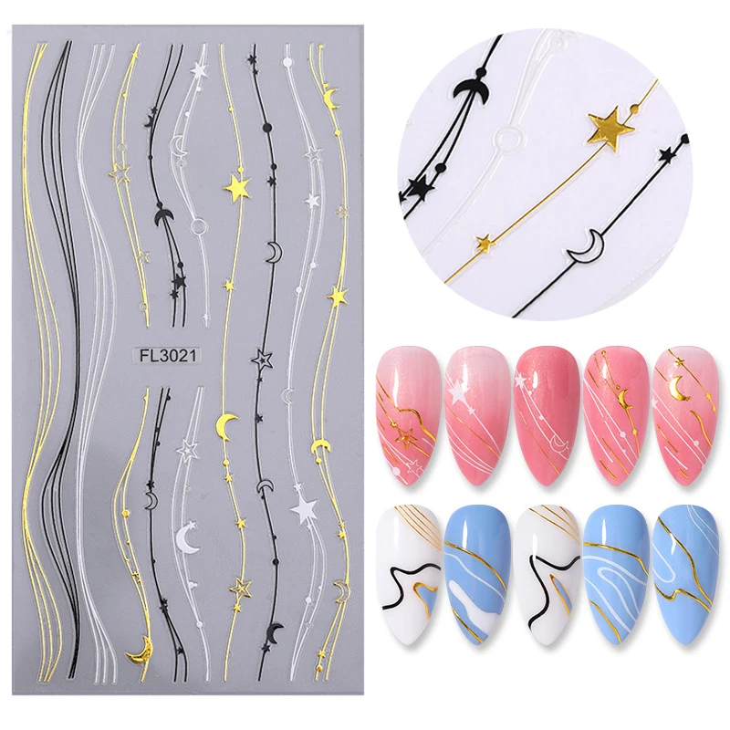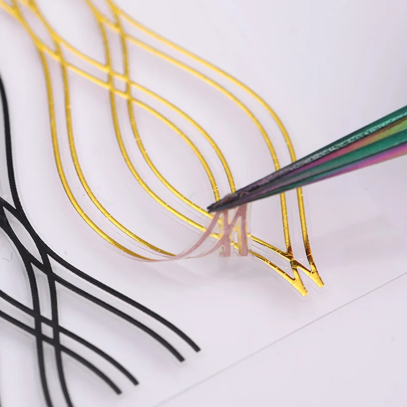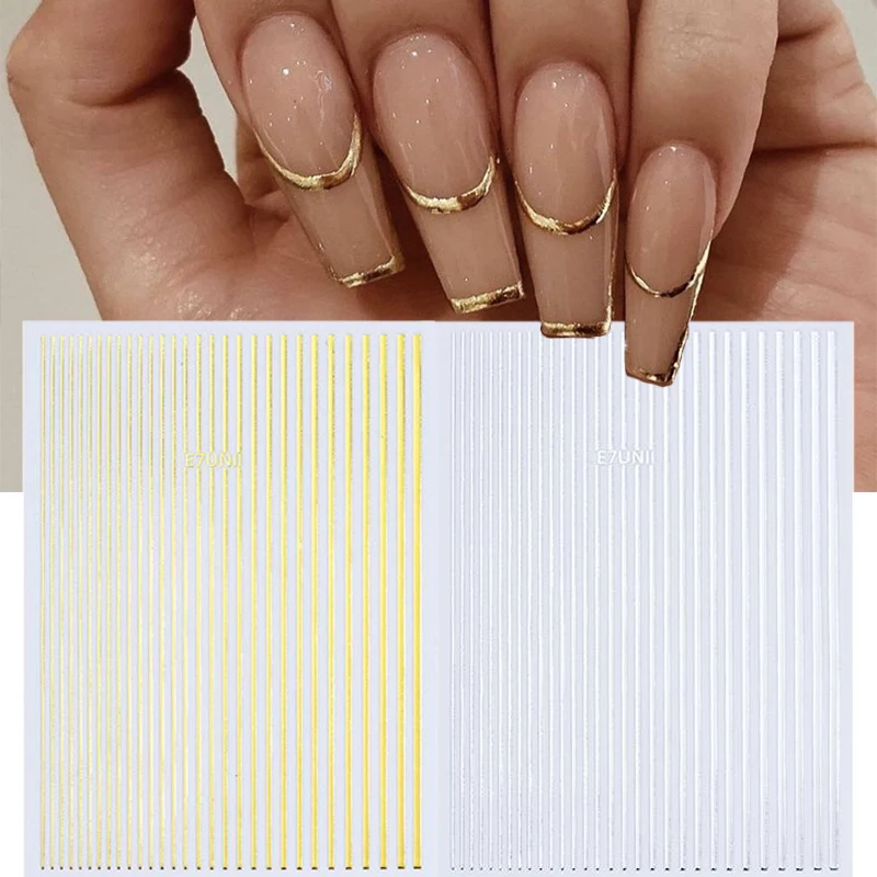 Золотистая серебристая металлическая лента для дизайна ногтей полоса 3D линии наклейки для ногтей геометрический слайдер для ногтей Гель-лак наклейки для маникюра