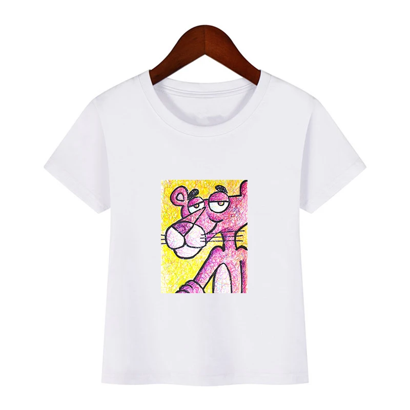 Новая детская футболка в стиле Харадзюку повседневные розовые футболки с принтом Пантеры, топы, футболка Летняя модная детская футболка с короткими рукавами, одежда