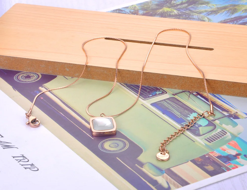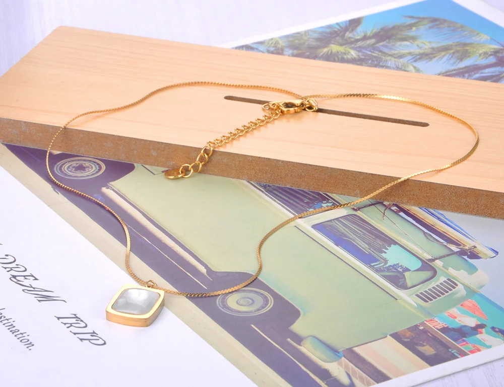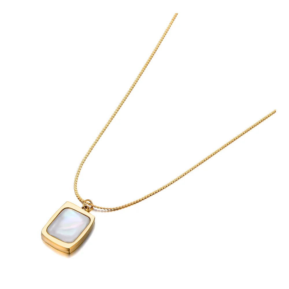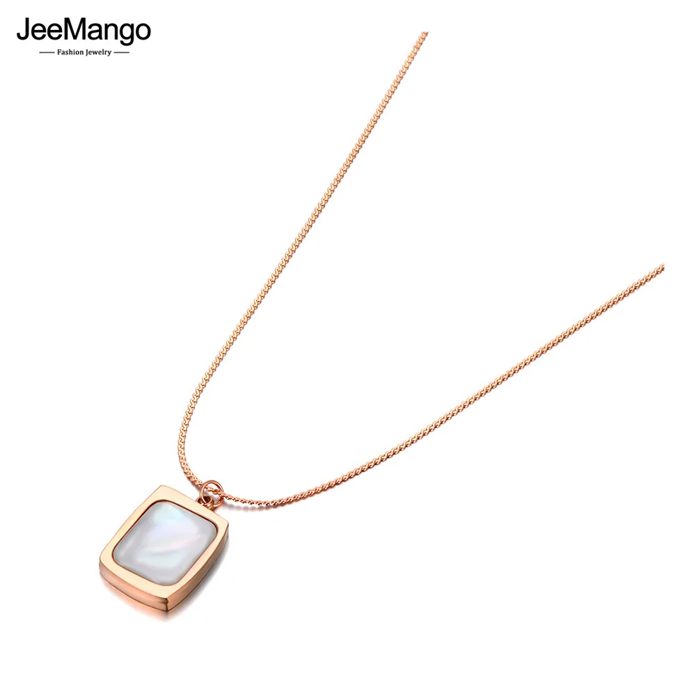 JeeMango модные ожерелья с белыми квадратными подвесками в виде ракушек для женщин и девушек ожерелье-чокер из титановой нержавеющей стали ювелирные изделия JN21163