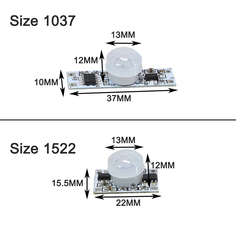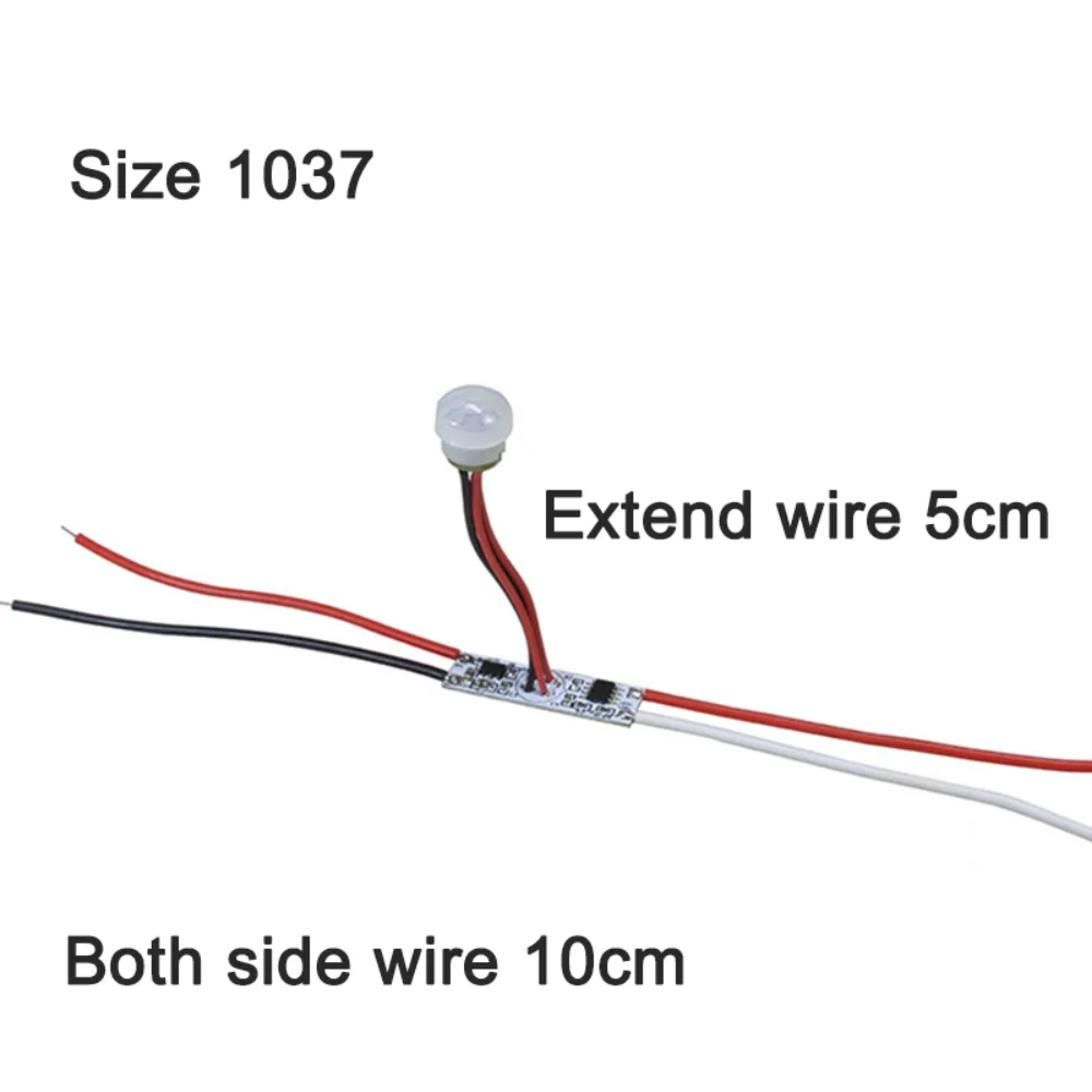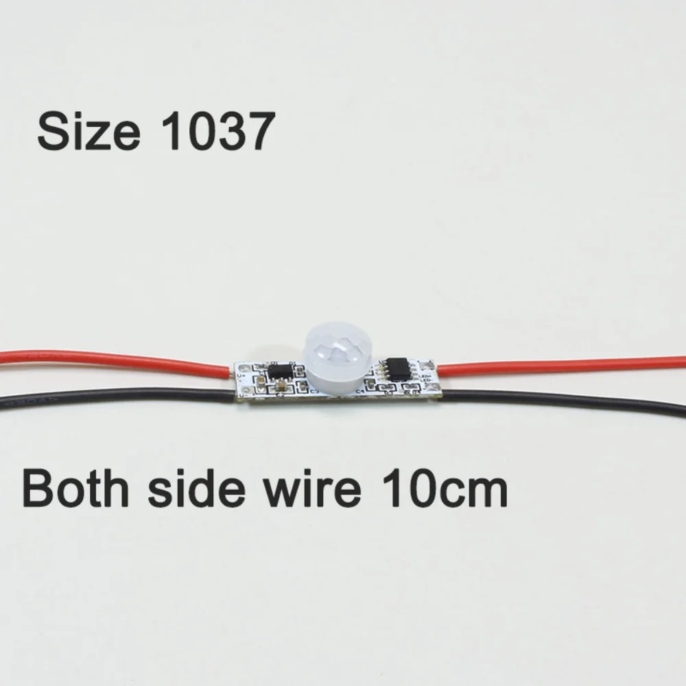 самый маленький датчик на движение для ленты. брал с проводом чтоб рассеиватель не резать. главный плюс у всех этих датчиков ширина 10мм как у светодиодной ленты.