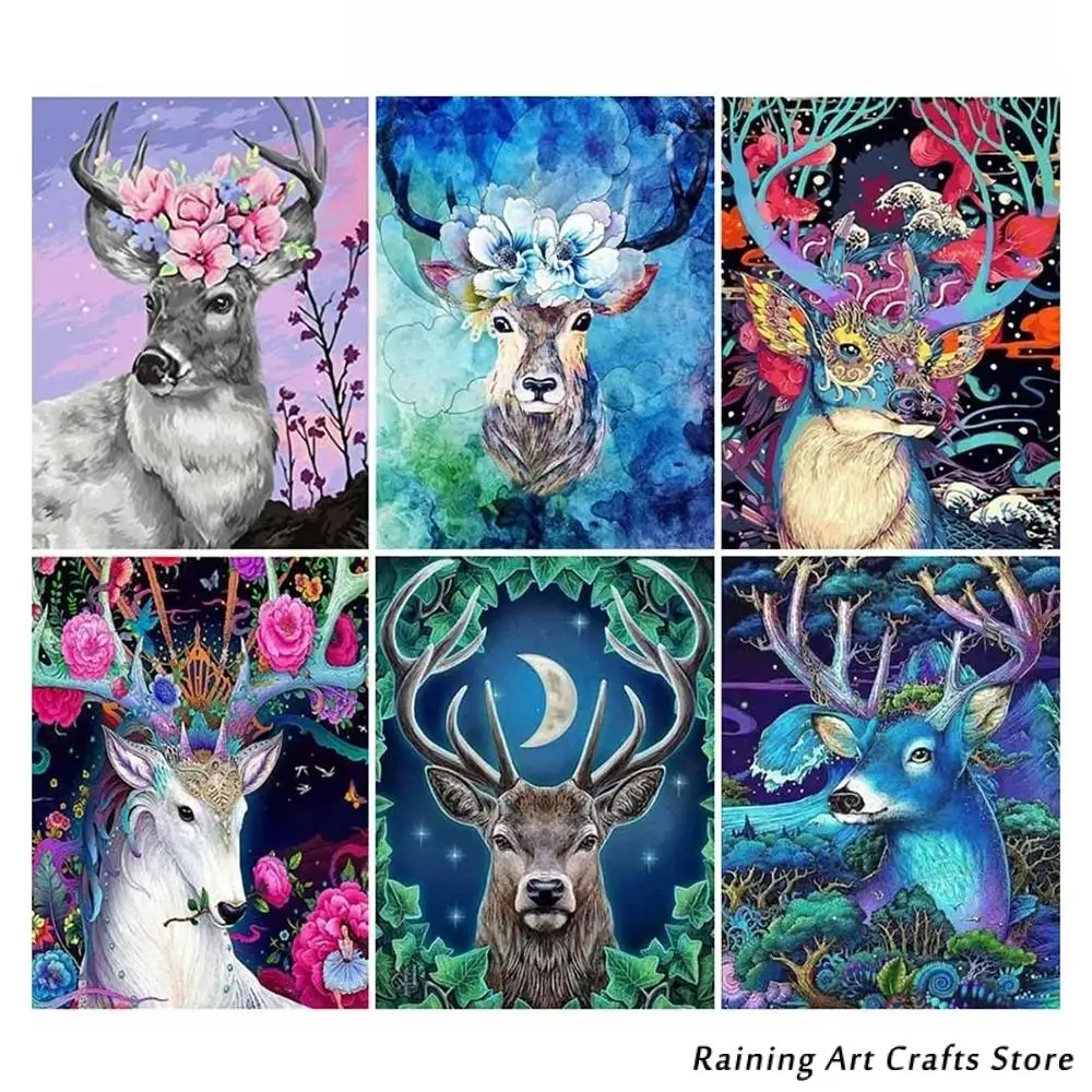Алмазная 5D картина сделай сам, вышивка с животными, полноразмерная, круглая, буровая, в стиле Фэнтези, лось, наборы для вышивки крестиком, мозаичные картины, украшение для дома