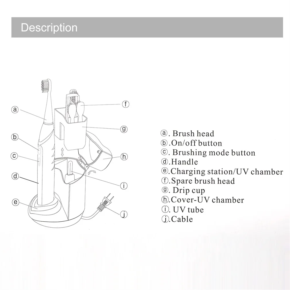 Особенности:Усовершенствованная электронная система управления делает работу более выразительной и удобной.Сильная акустическая вибрация не может чистить обычную зубную щетку до места, где пищевой мусор тщательно очищается.Мягкая импульсная звуковая вибрация может мягко массировать десны, чтобы зубы были более здоровыми.Пять режимов работы соответствуют 5 режимам.Гуманизированная конструкция головки кисти, использование более комфортное.С узнаваемым декоративным кольцом сопла, для достижения машины больше, чем использование функций.Многократная зарядка, защита окружающей среды.Характеристики:Источник питания: AC100-240VВыход зарядного устройства: 5 в 60 мАВстроенная перезаряжаемая батарея: литиевая батарея. 700 мАчЧастота вибрации зубной щетки: 40000 раз/минШум: не более 75 дБ (A)Заряд аккумулятора:> 500 цикловКаждый раз Полная зарядка: 90 минут или более.Тип вилки: ЕС, США, ВеликобританияРазмер: 100*100*270 ммН. В. : 481 гПосылка включает в себя:1 зарядное устройство1 x ручкаГоловка зубной щетки-3 шт.1 х Руководство