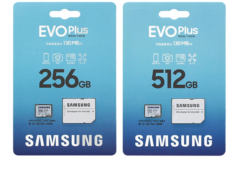 Карта памяти MicroSD SAMSUNG EVO PLUS, 128 ГБ, 256 ГБ, 512 ГБ, A2 V30, скорость передачи данных до 130, МБс., TF-карта класса 10, 64 ГБ, A1 V10