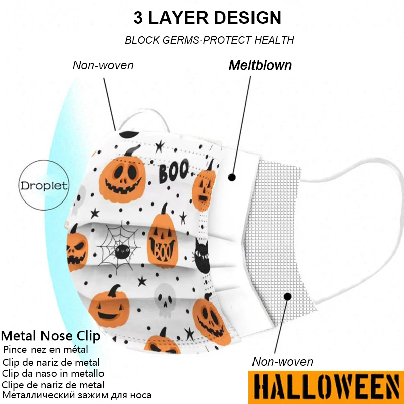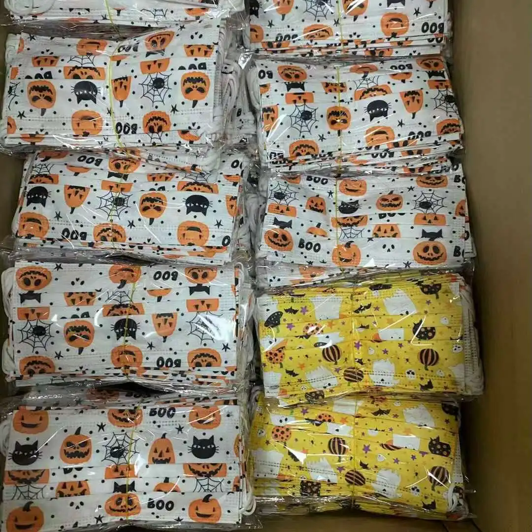 Маски одноразовые трехслойные с рисунком тыквыэльфа, 50100 шт.