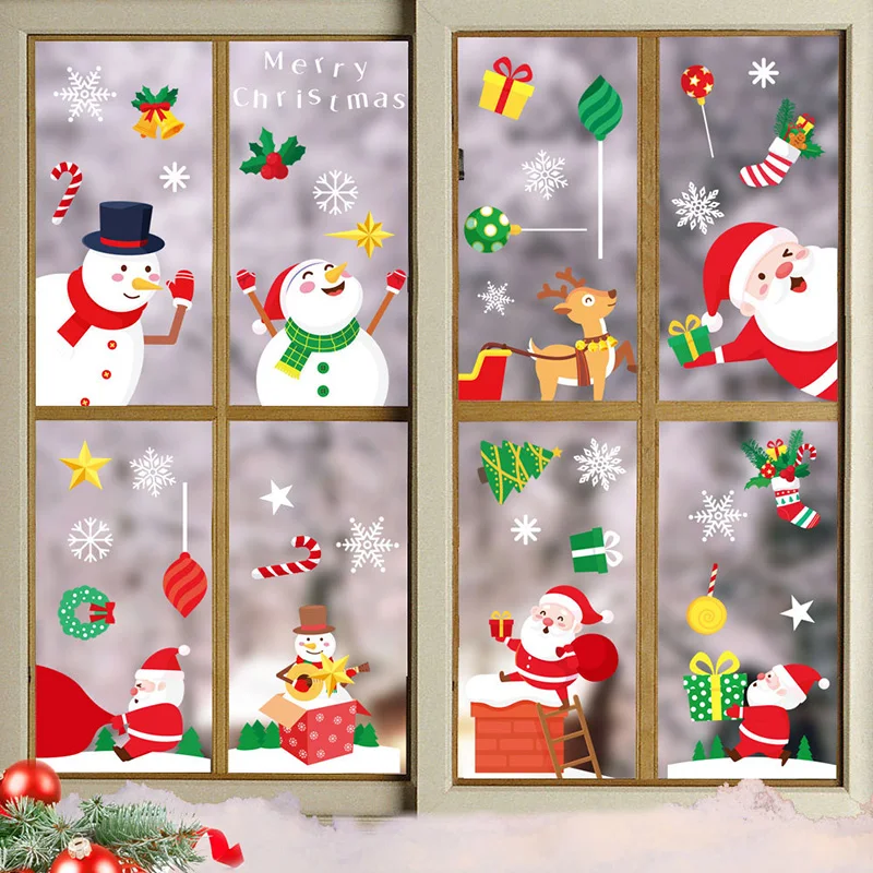 Новогодние наклейки на окно с рождеством, статическое украшение, наклейки для дома, 2021 Рождественский подарок, новогодние украшения