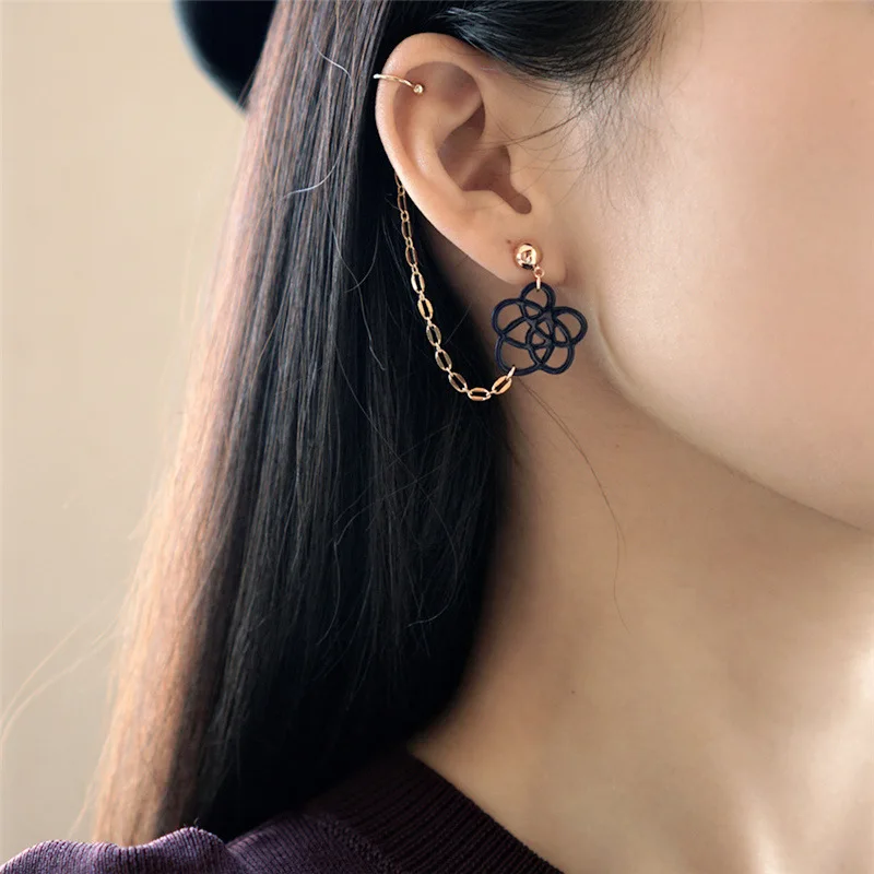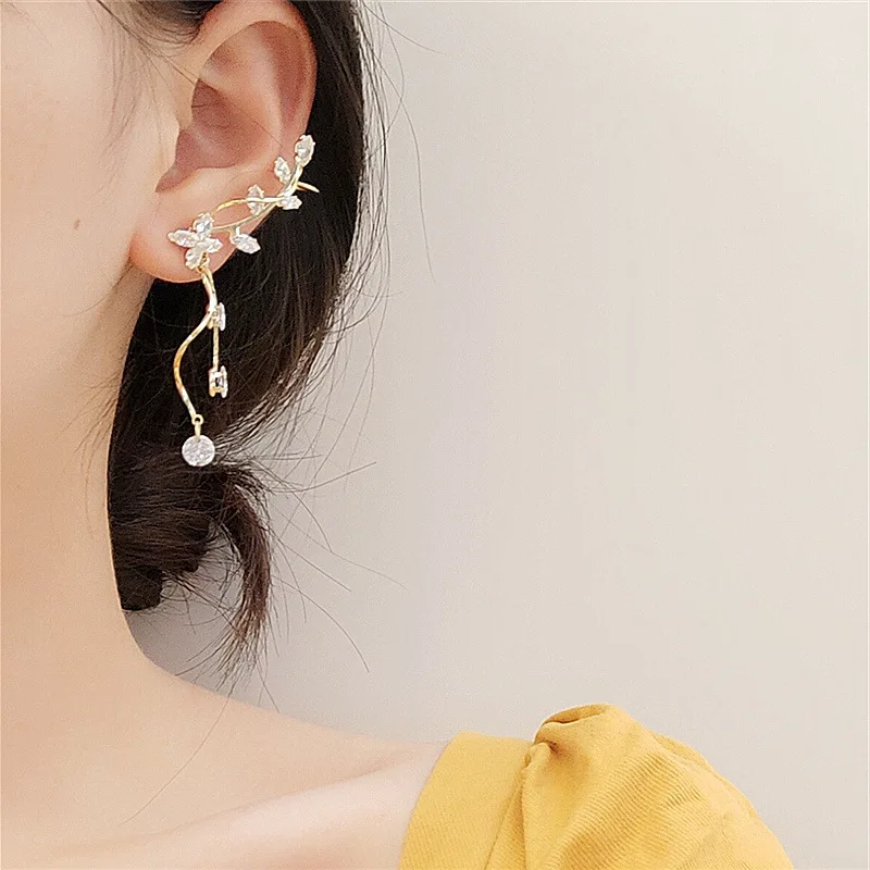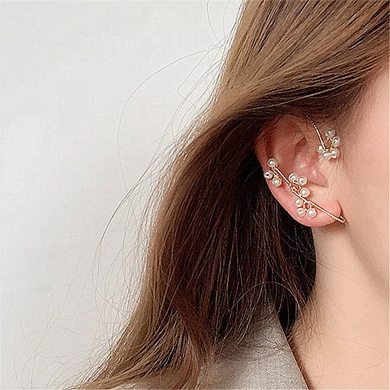 Новинка 2020, модная цепочка с имитацией жемчуга, серьги-каффы для ушей, Хрящевые серьги для женщин, элегантные длинные серьги-кисточки с цветами, Женские Ювелирные изделия