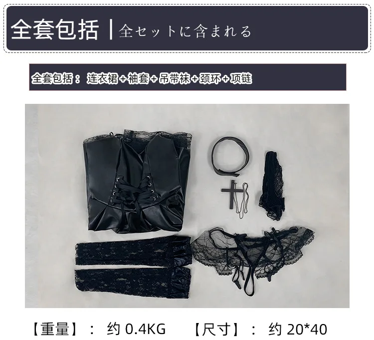 Костюм для косплея из искусственной кожи, перчатки, чулки и ожерелье