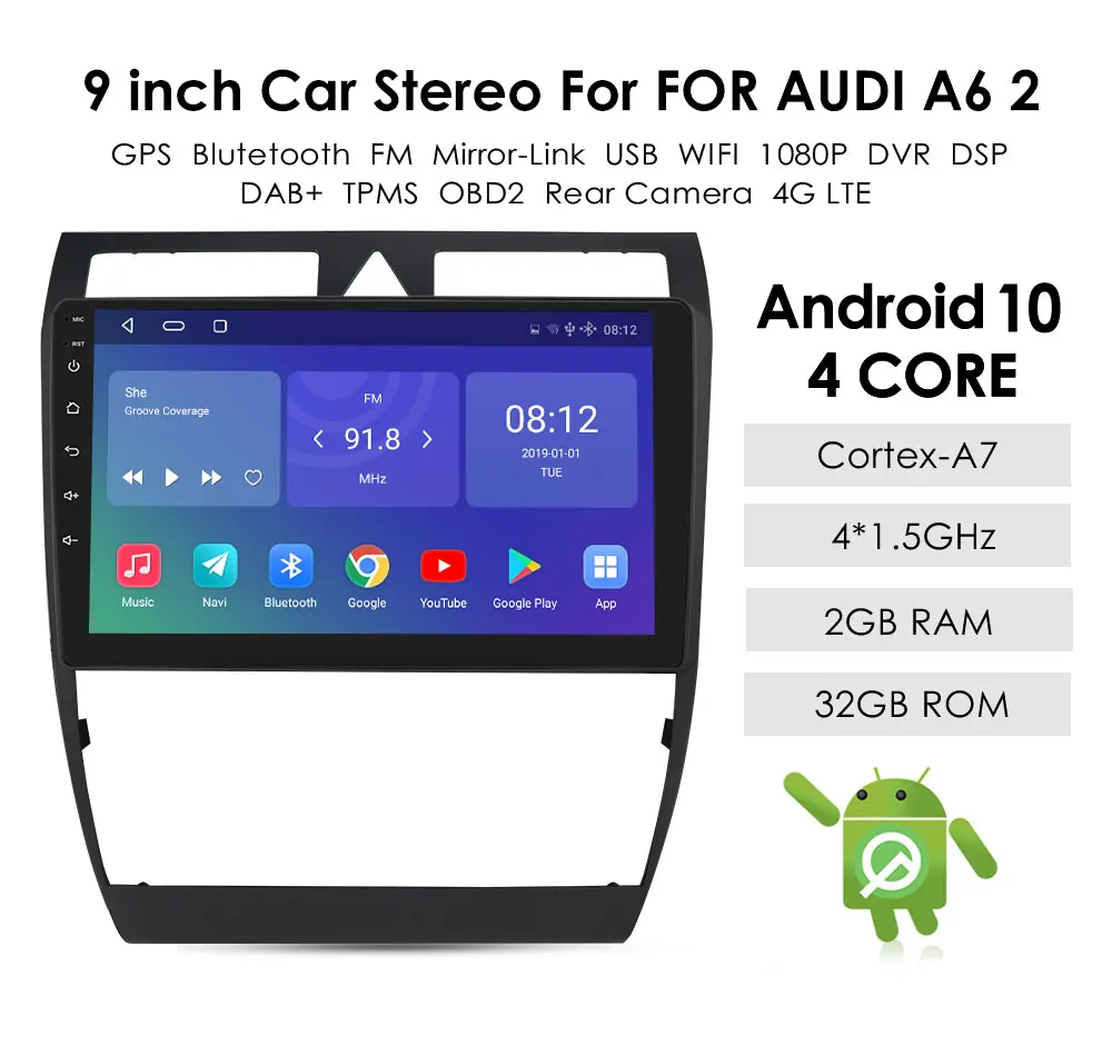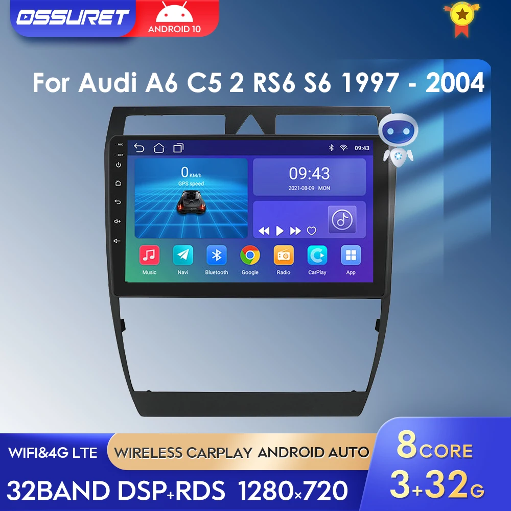Автомагнитола на Android 10 с GPS-навигацией для Audi A6 C5 2 RS6 S6 1997-2004 мультимедиа 2 DIN автомобильный стерео экран видеоплеер