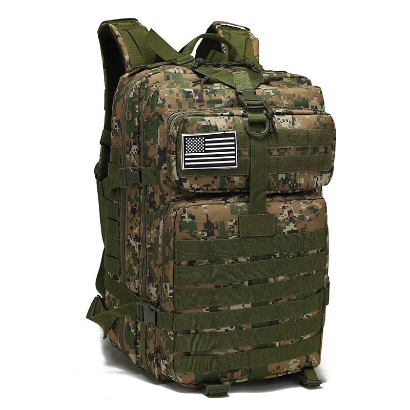 Удобные и прочные-Наплечные ремни проложены и регулируются, а пояс достаточно расширяется. Этот водонепроницаемый военный рюкзак изготовлен из прочной двойной сшитой ткани Оксфорд 900D. Толстая сетчатая подкладка на спине и плечевые ремни не прижмут вас при повышенной нагрузке.