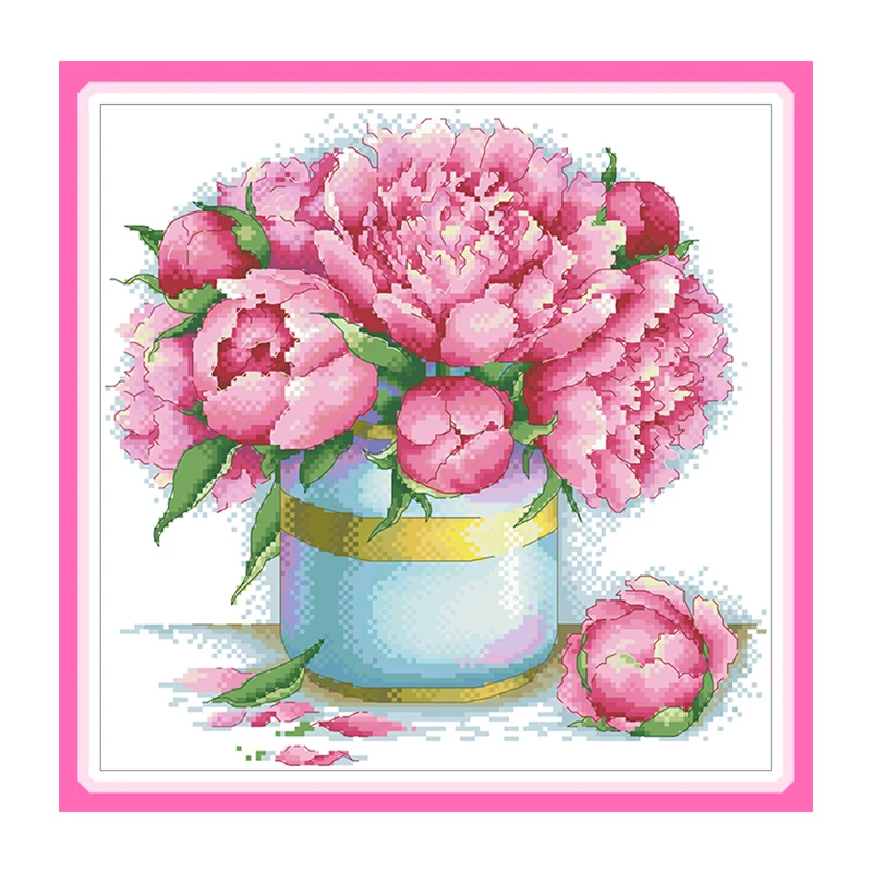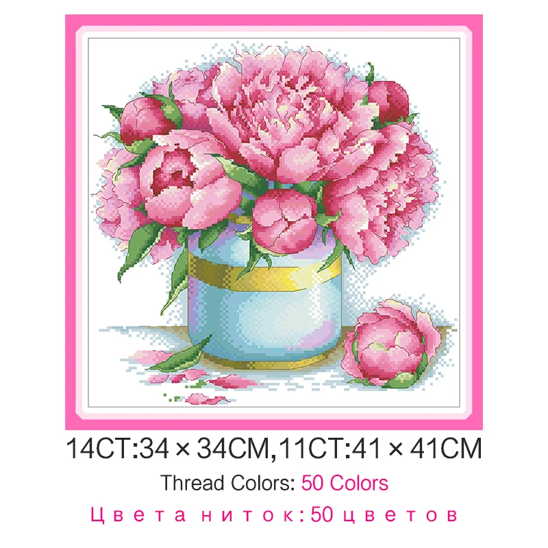 Великолепный Букет пионов, вышивка крестиком, полный комплект, без принта, холст, 11CT, 14CT, сделай сам, ручная работа, рукоделие, украшение для дома