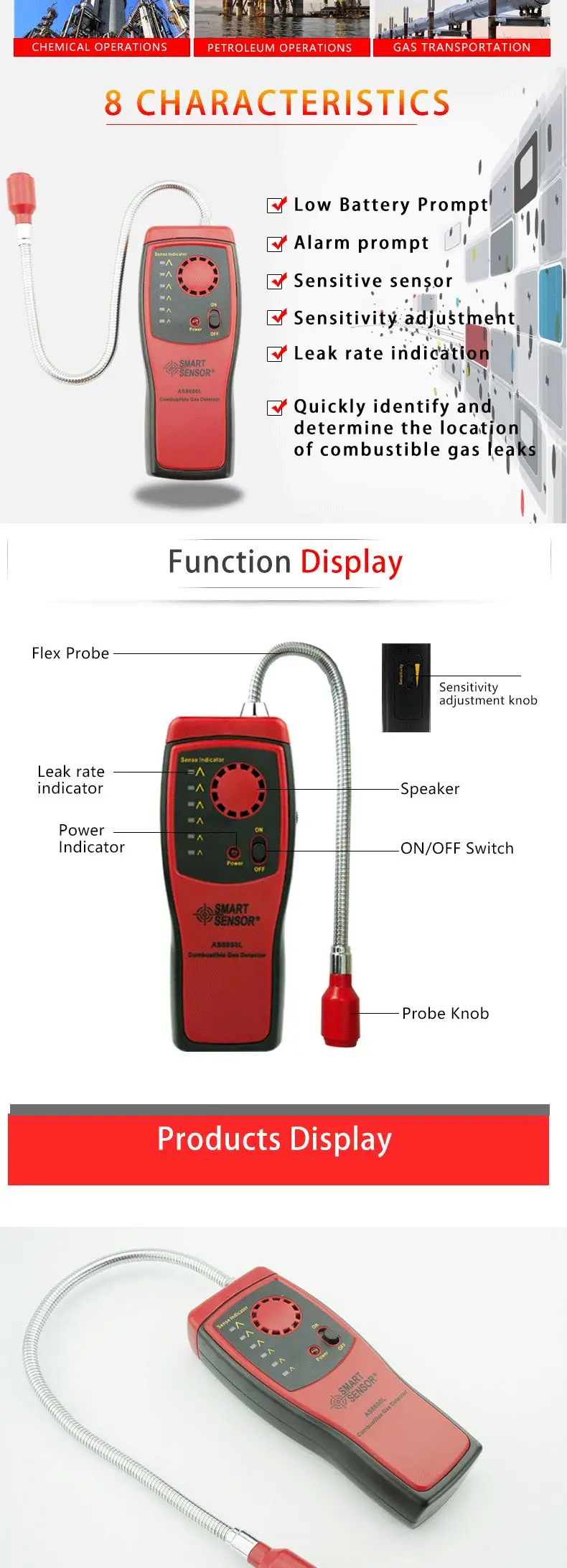 Высокочувствительный ручной детектор природного газа, анализатор утечки горючего газа, индикатор, сигнальный сигнал тревоги