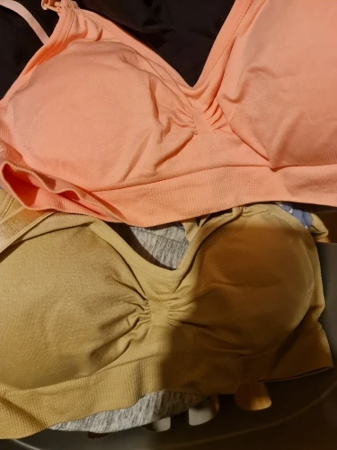 Фото соответствует, поэтому прикреплять не стала. До этого уже брала такие несколько раз у других продавцов, очень удобно дома ходить, так вот те лифчики были гораздо плотнее, эти сильнее тянутся и кажутся недолговечными. Кроме того, там самый большой размер был ХХL, а эти - XL, влезла только за счет того, что хорошо тянутся (у меня чашка 5)