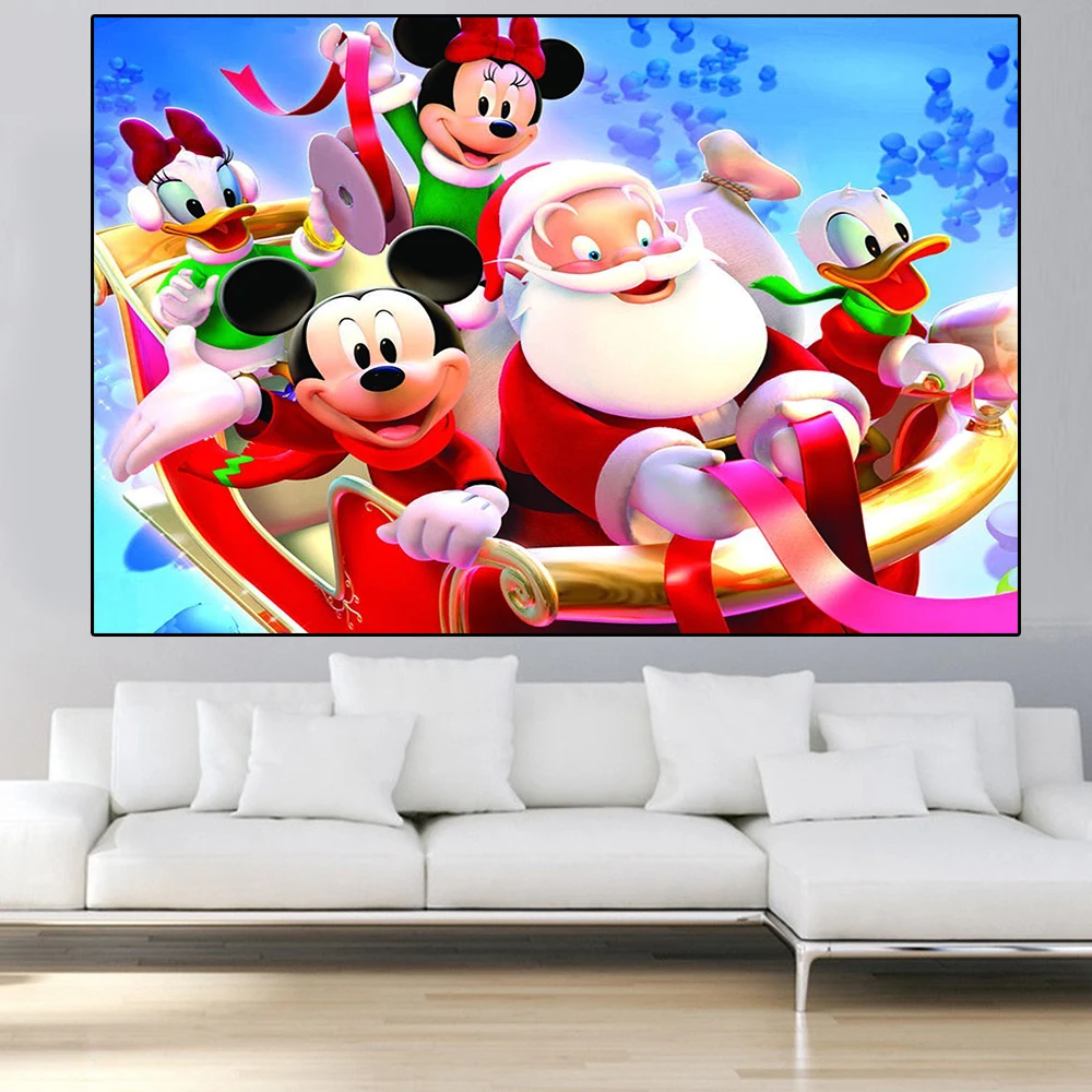 Мультяшные Disney Микки, Дональд Дак Рождественская Картина на холсте Санта-Клаус Рождественская елка плакат настенное искусство для детской комнаты украшение для дома