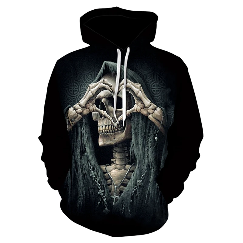 Толстовка мужская с 3D-принтом черепа, хип-хоп худи, новая уличная ...