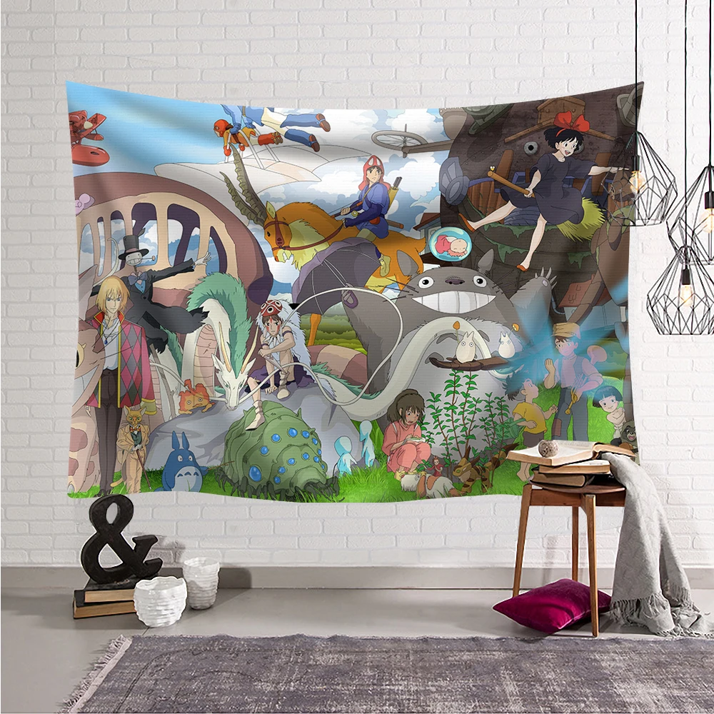 Настенный гобелен с изображением милого кота, японского аниме, для гостиной, домашнего декора, эстетический принт, декор в стиле бохо, пляжное полотенце, покрывало для йоги