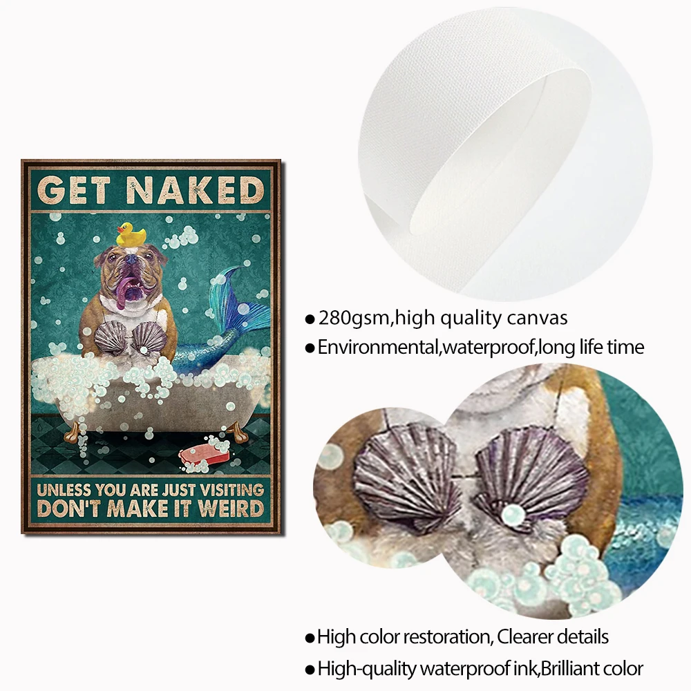 Картина на холсте, настенное искусство, Русалка, кошка, Выдра, Питбуль, собака, постер с изображением медведя Get, принты, картины, картины, ванная комната, туалет, украшение для дома