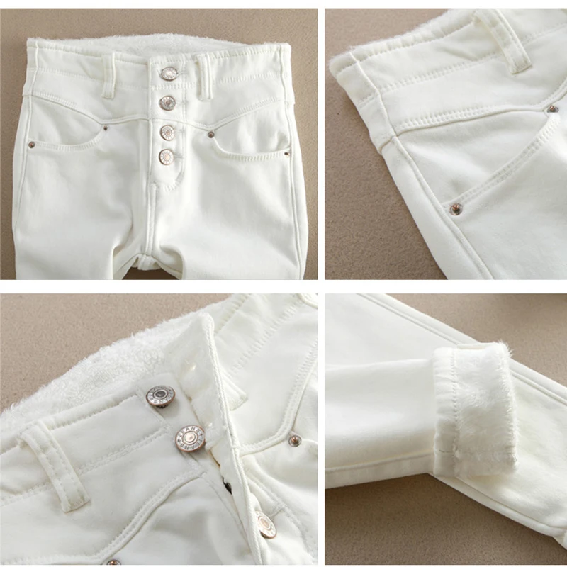 Зимние теплые джинсы, брюки-карандаш, джинсовые брюки с высокой талией, эластичные брюки-карандаш из белого и черного бархатного меха, женские джинсы