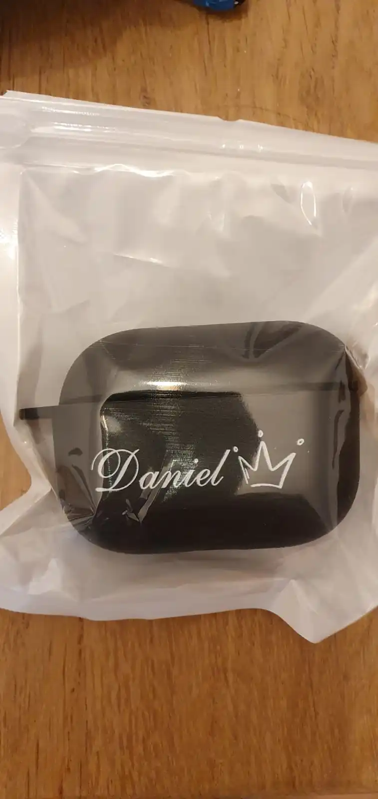 Они прибыли вовремя, гравировка очень красивая, крышка AirPod твердая, а промо мягкая