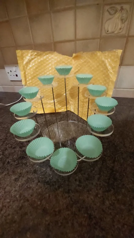 Очень красиво, однако намного меньше, чем ожидалось. На мой взгляд, кекс не подойдет. Кусочки колец накладываются в пучок, поэтому кекс будет помещаться только на верхние части, а не на другие. Не стоит своей цены, не потратит на это 10 фунтов. Очень маленький Маленький маленький размер для кексов. Смотрите фото.